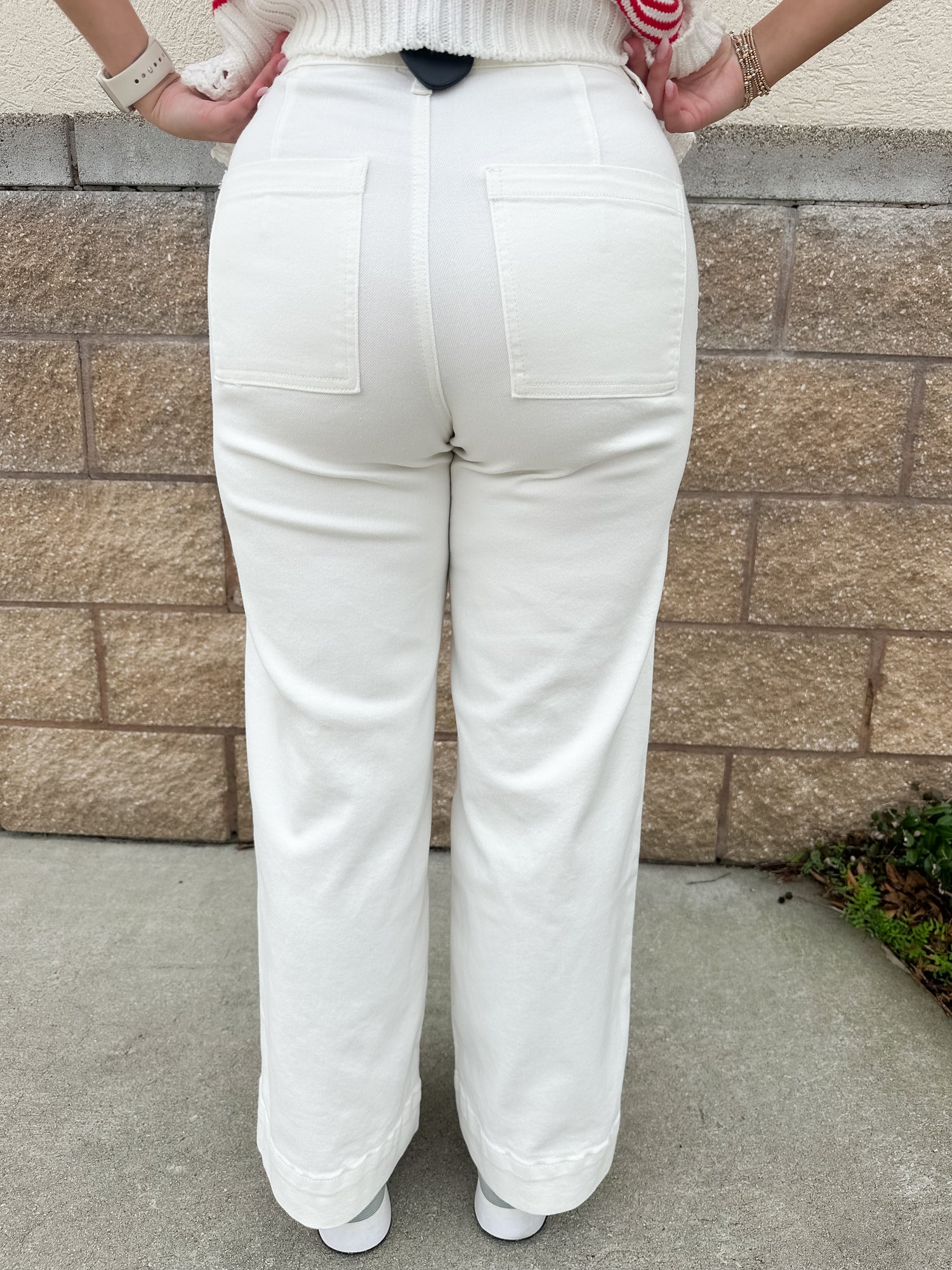 AW Pin Tuck Wide Leg Jean - White