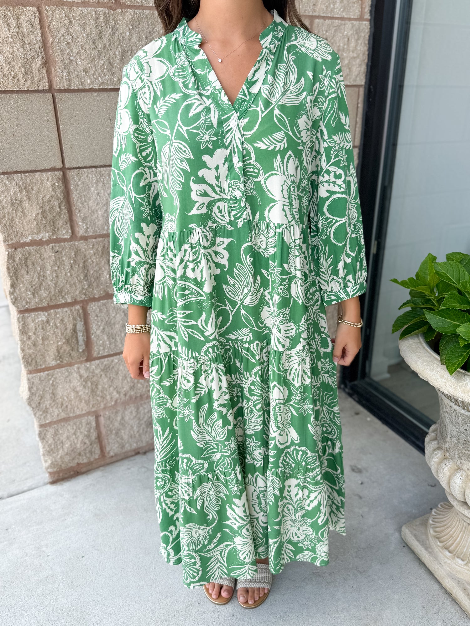 Bloom in style in this gorgeous midi dress! Perfect for transitioning into fall!