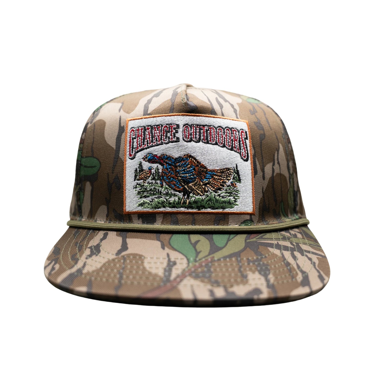 Enrich your hunting wardrobe with our Vintage Turkey Bottomland Rope Hat. Featuring a classic bottomland camo design and our vintage turkey embroidery, this hat is perfect for both hunting and casual wear. Stay hidden and stylish in the great outdoors.