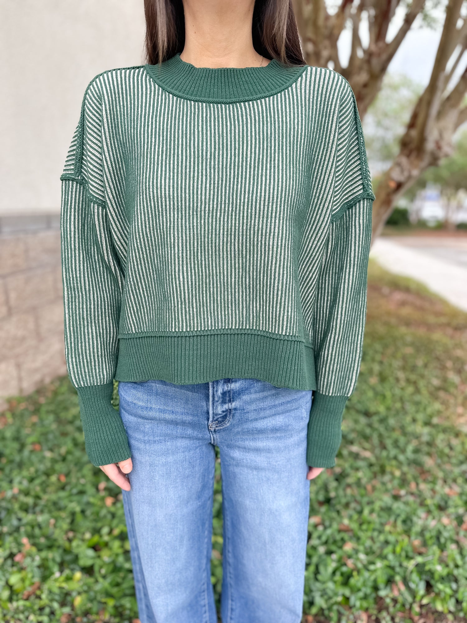 The Courtney Ribbed Sweater is offered in sizes Small-Large and comes in several different colors!
