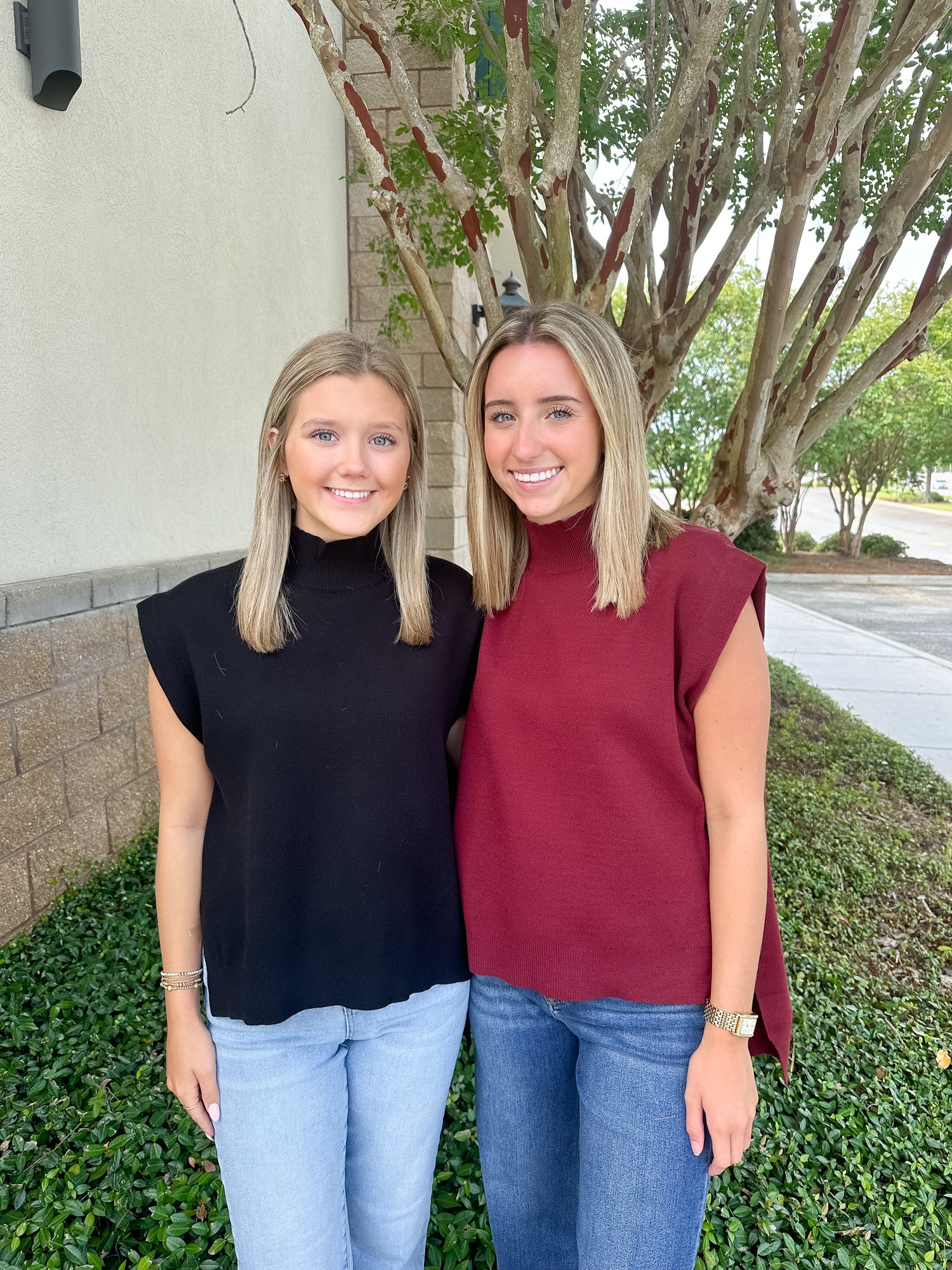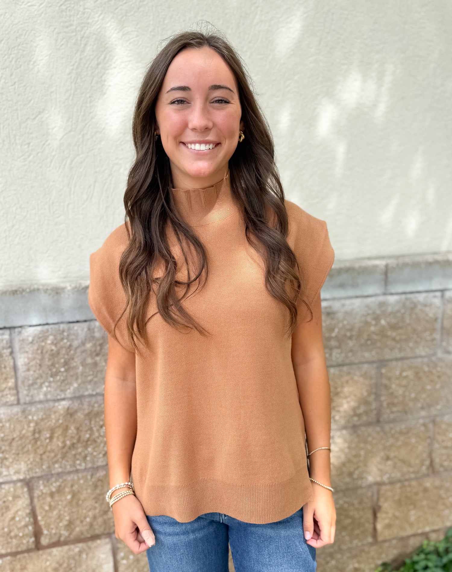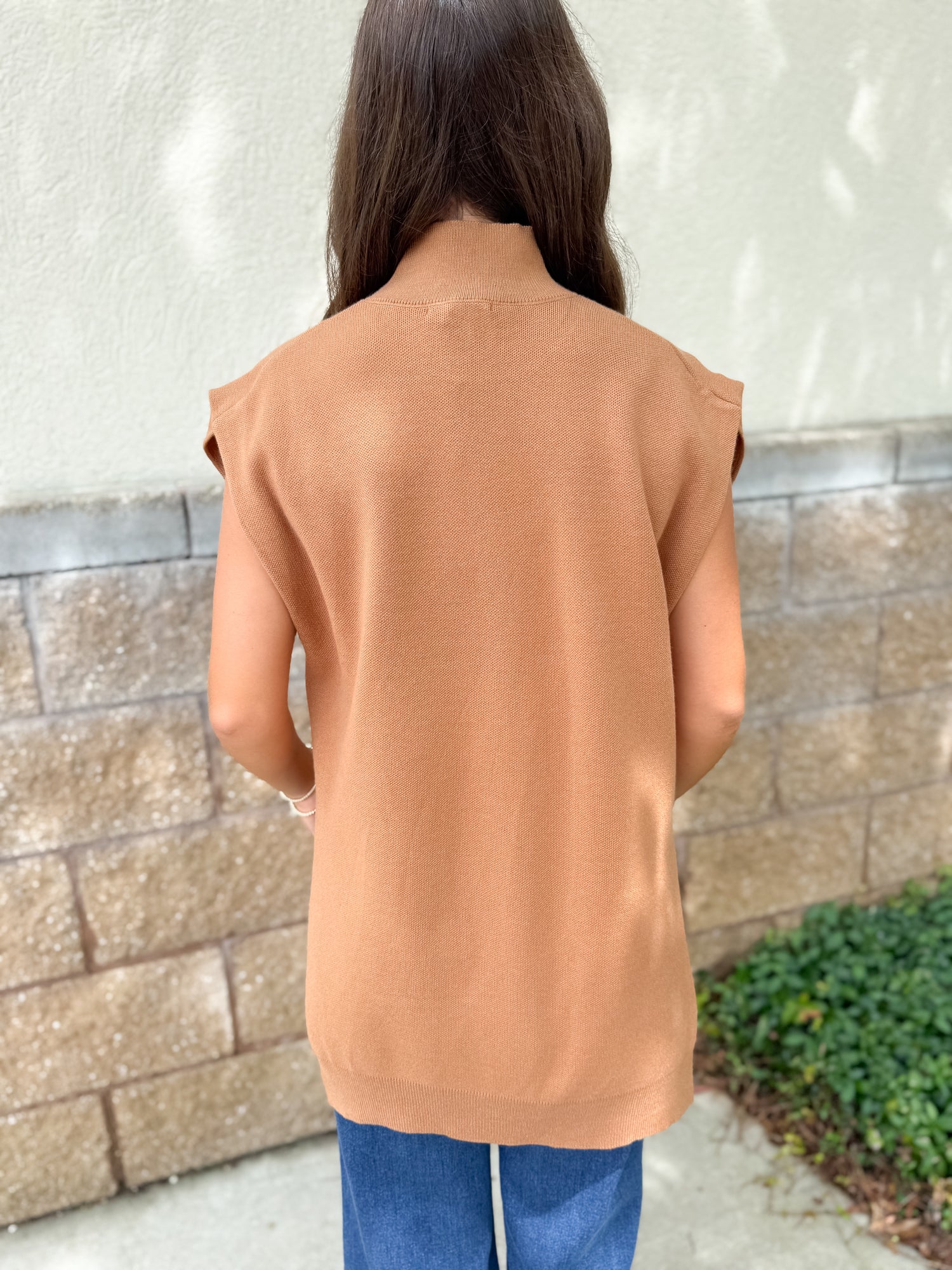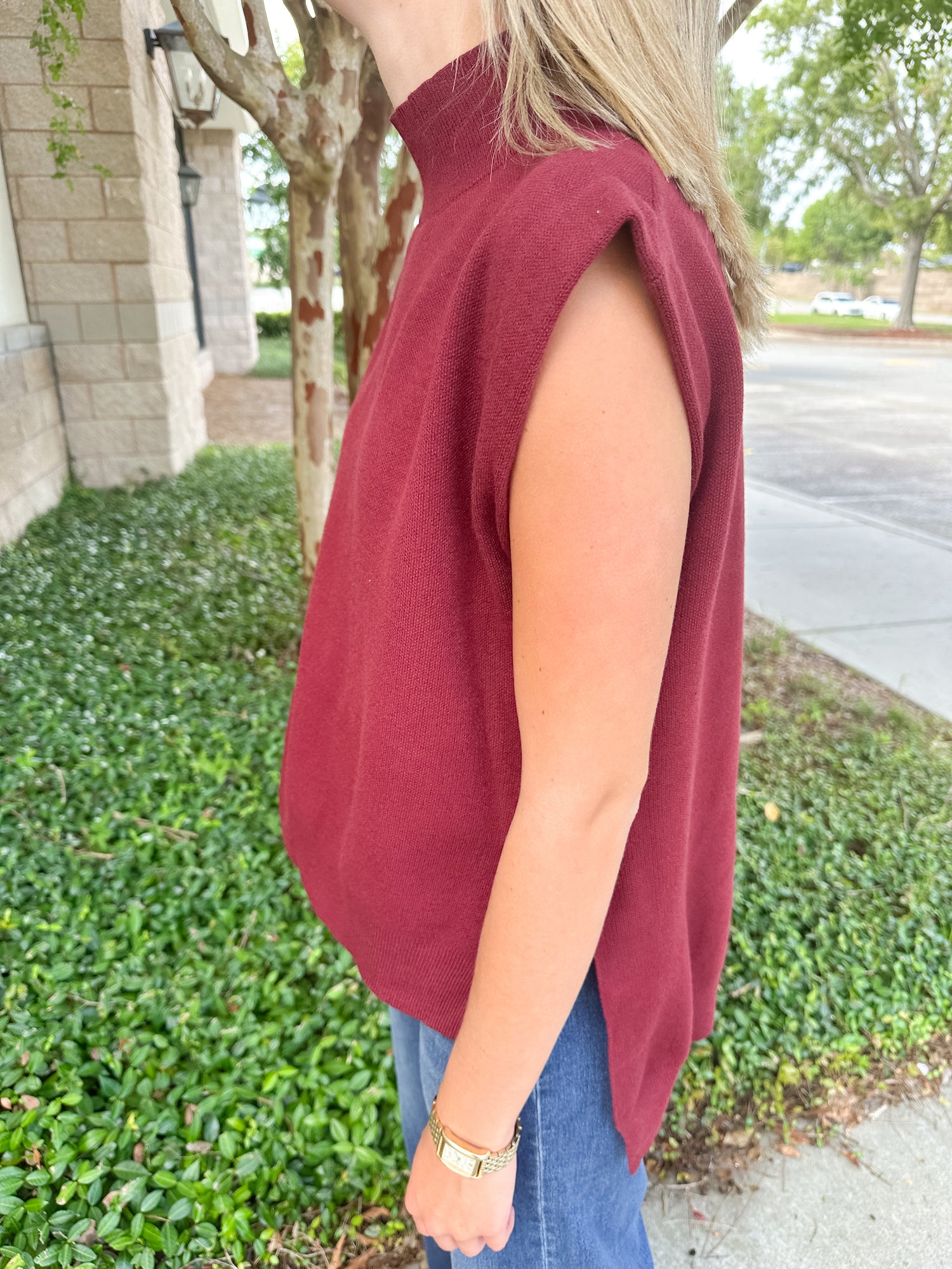 Solid mock neck muscle tee sweater knit hi-lo pullover. Unlined. Knit. Non-sheer. Lightweight.