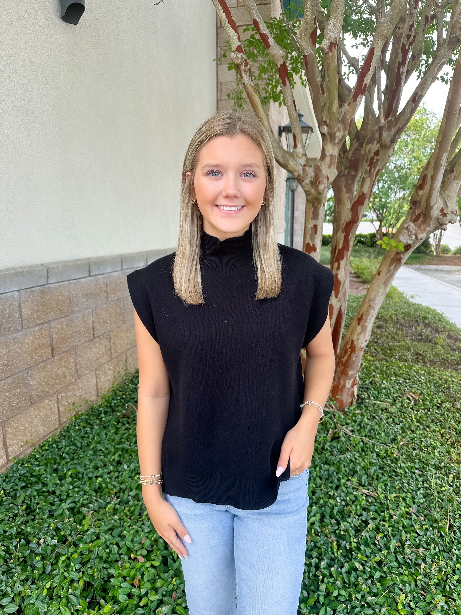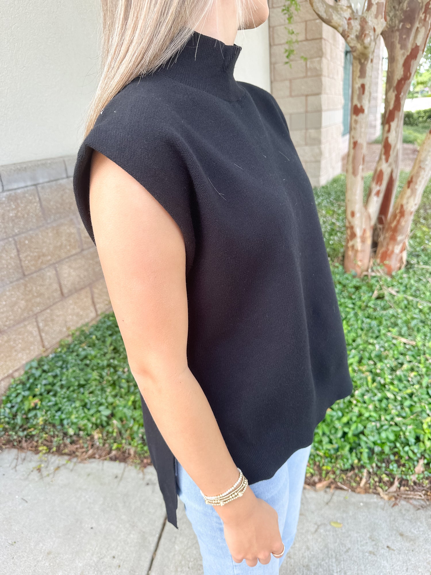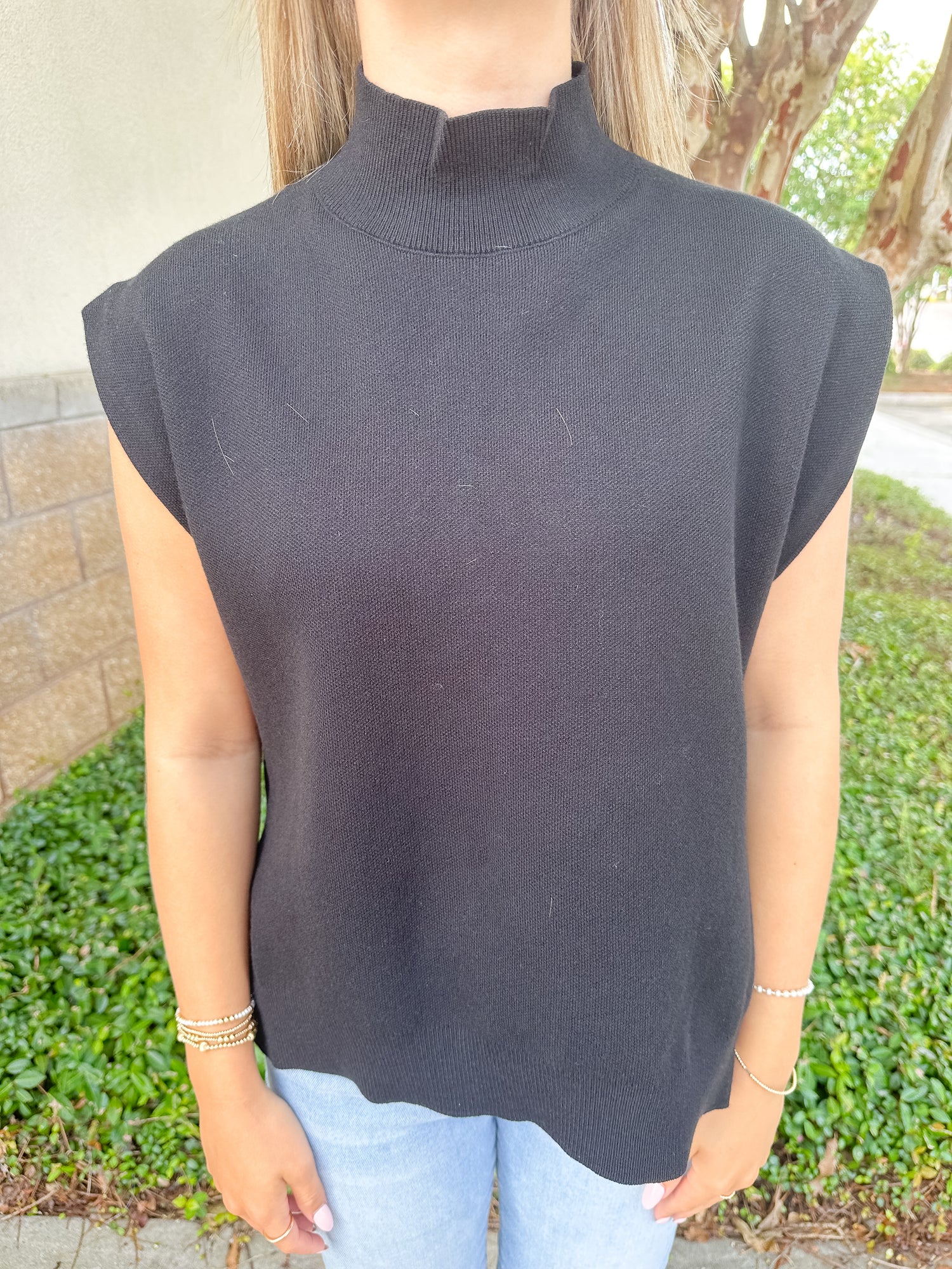Solid mock neck muscle tee sweater knit hi-lo pullover. Unlined. Knit. Non-sheer. Lightweight.