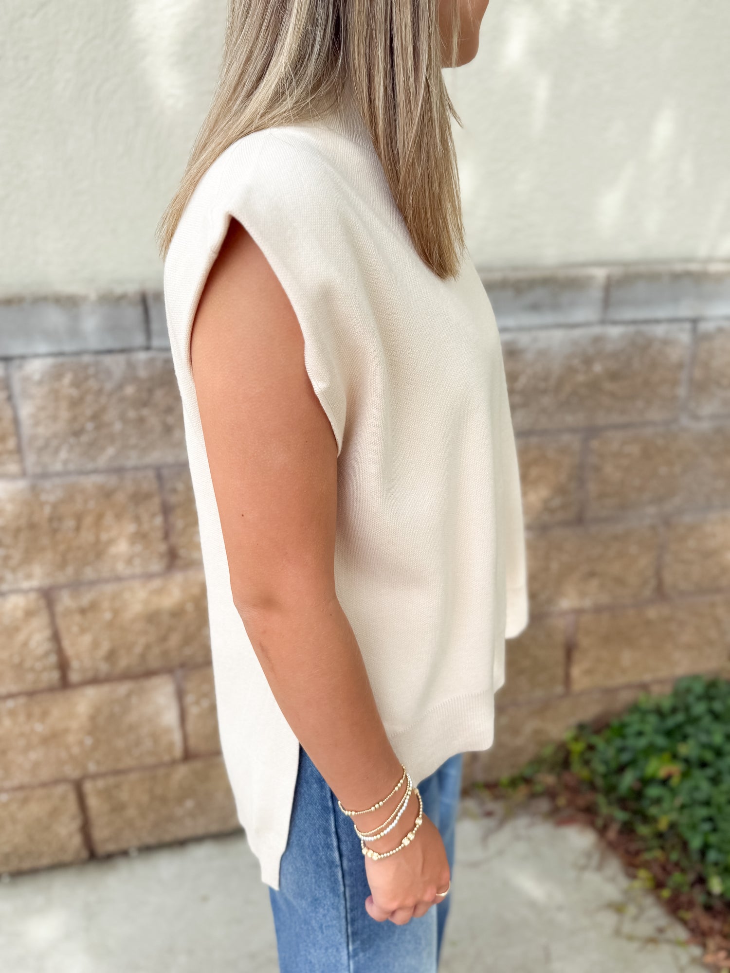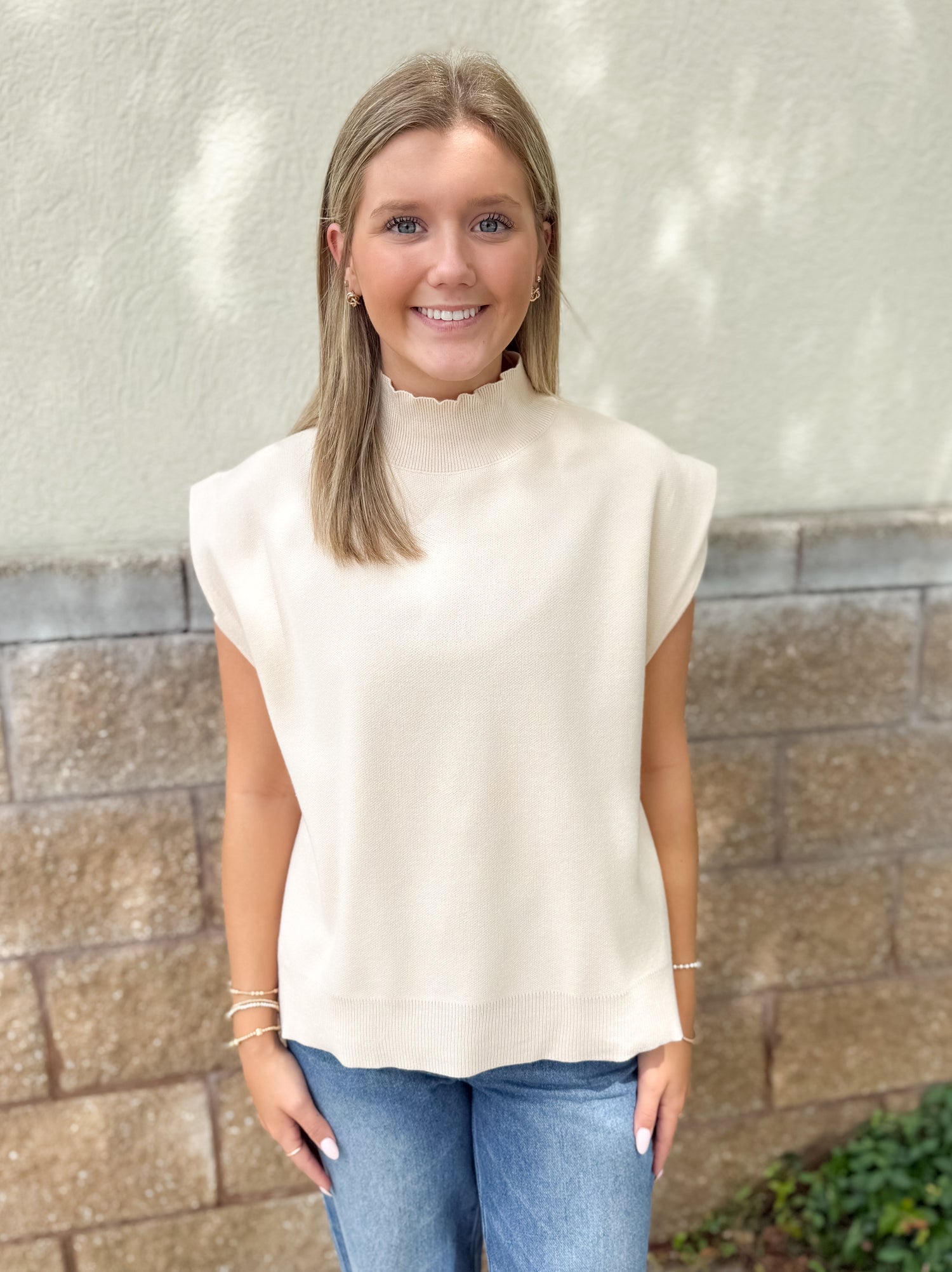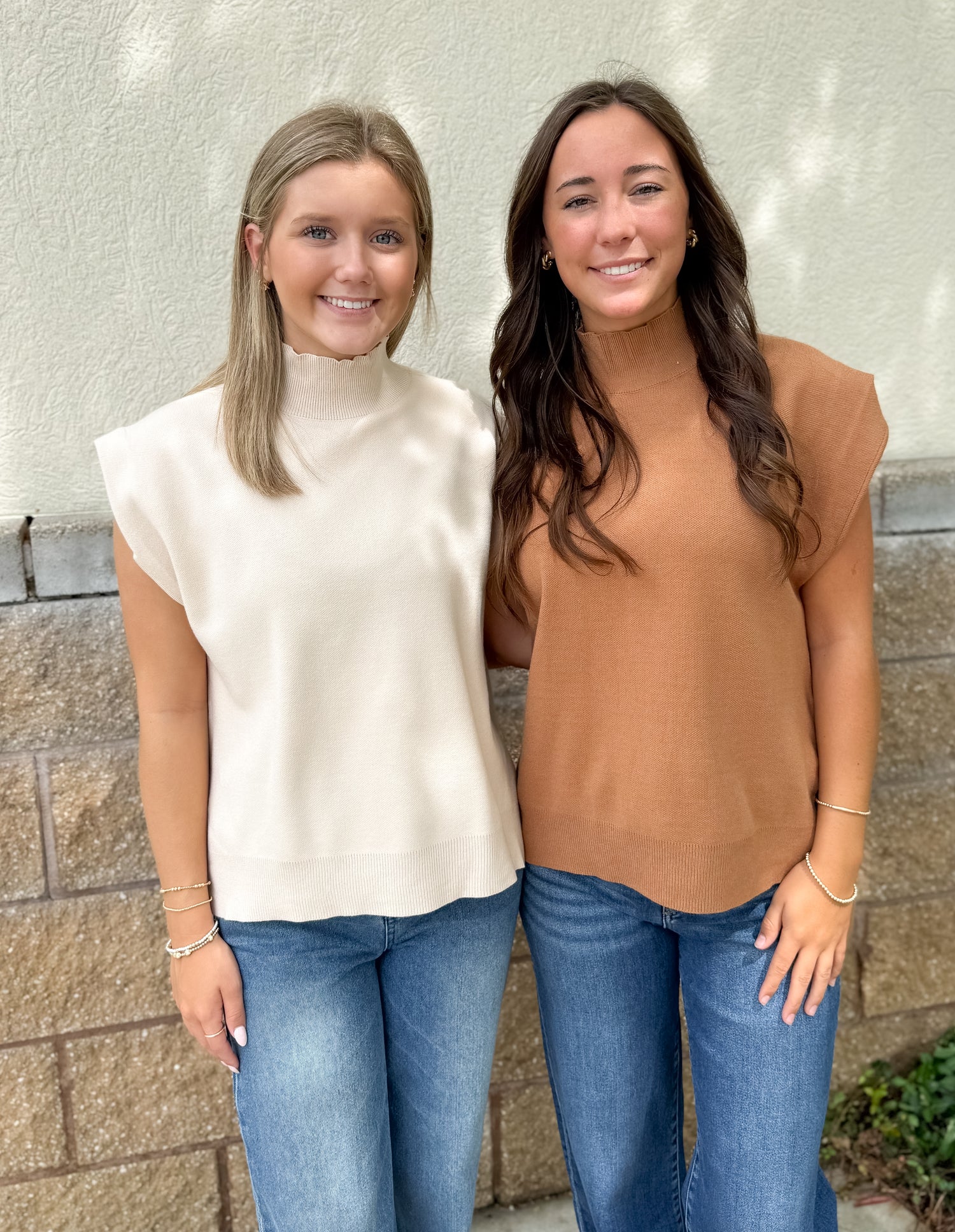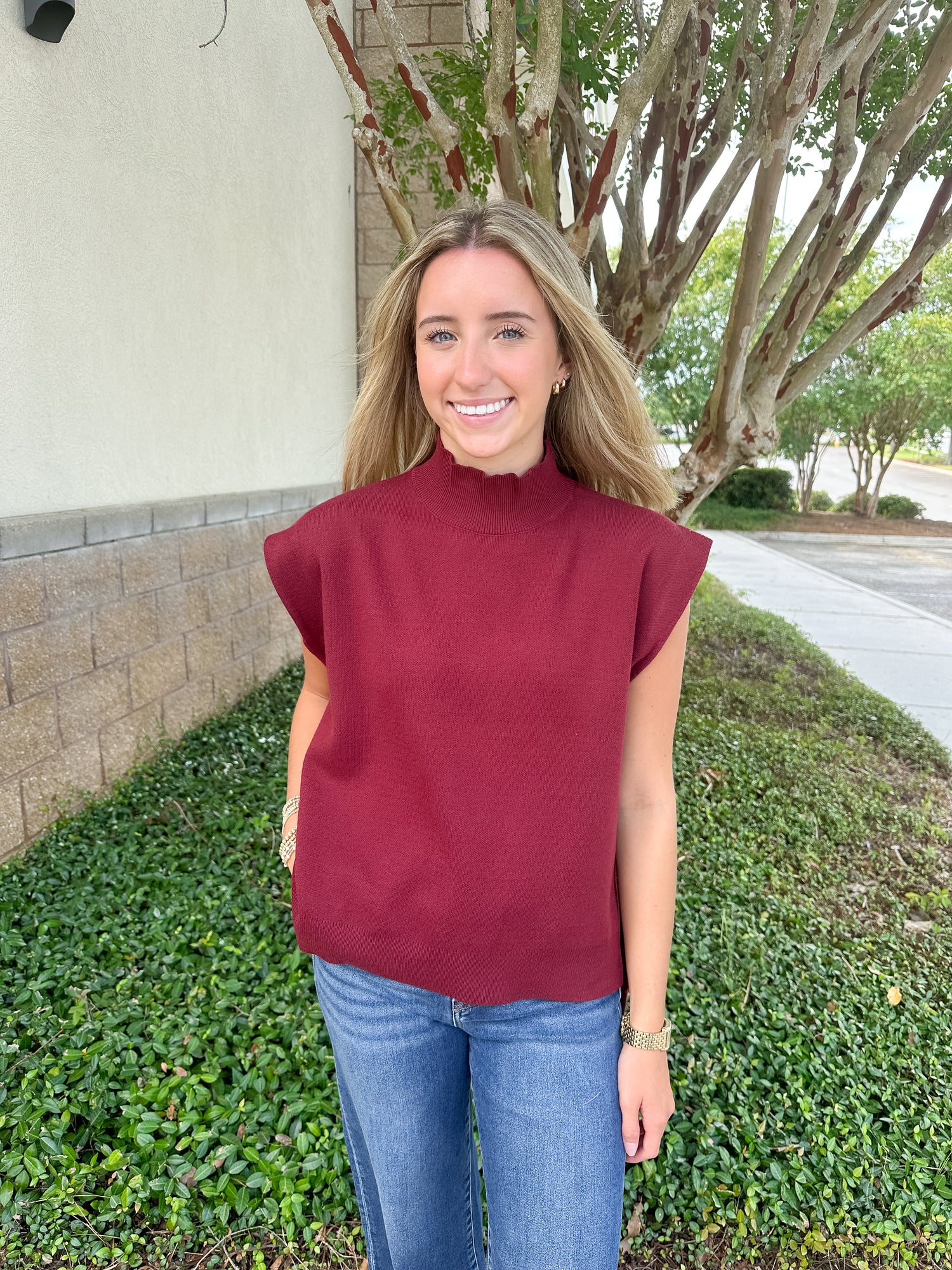Solid mock neck muscle tee sweater knit hi-lo pullover. Unlined. Knit. Non-sheer. Lightweight.