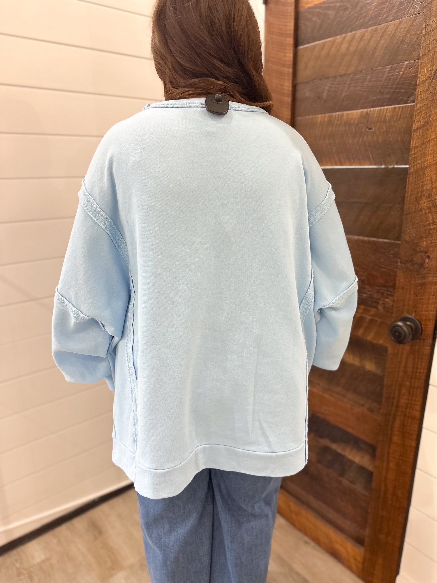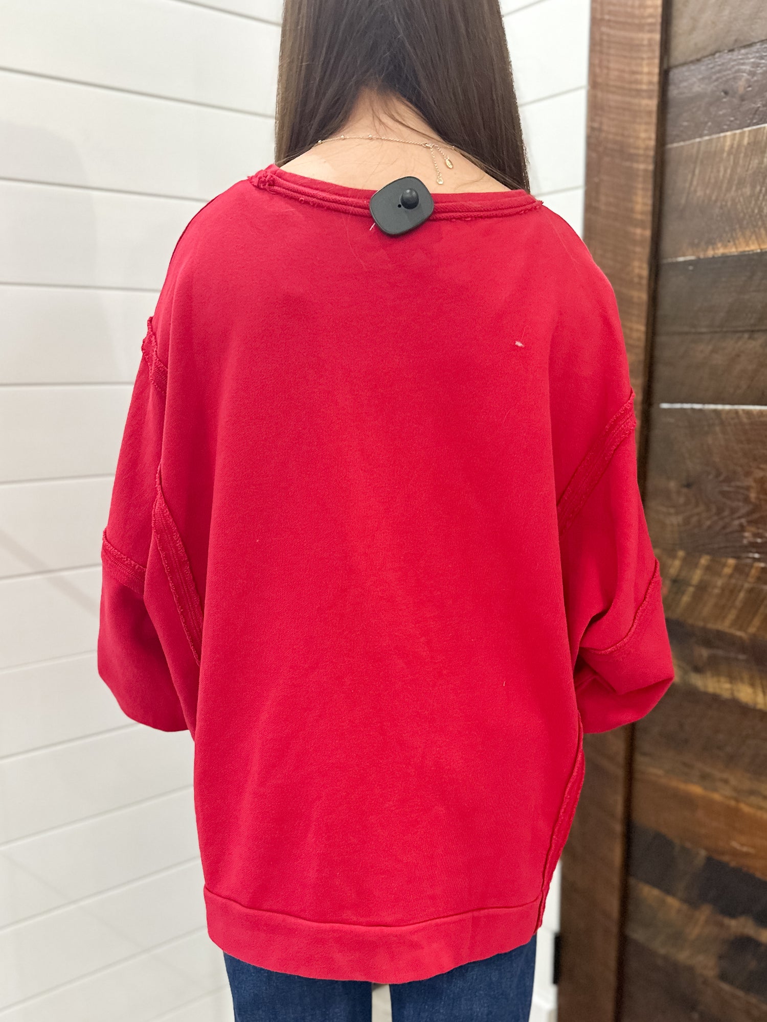 The Festive Feels Sweater has the cutest corduroy holiday cut outs. This sweater comes in red or blue and sizes S-L.