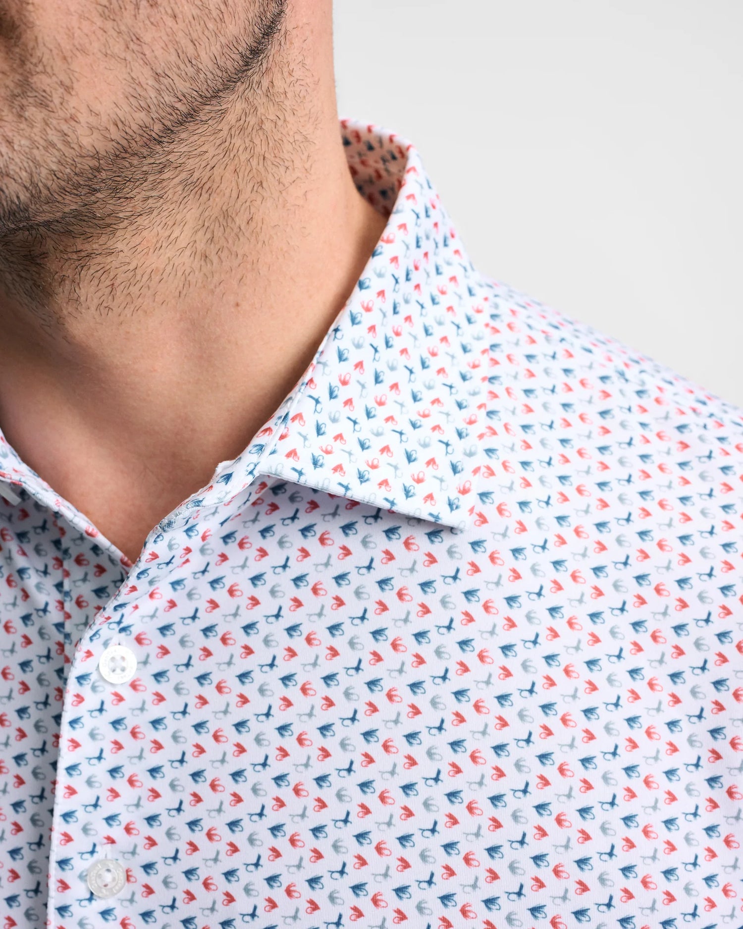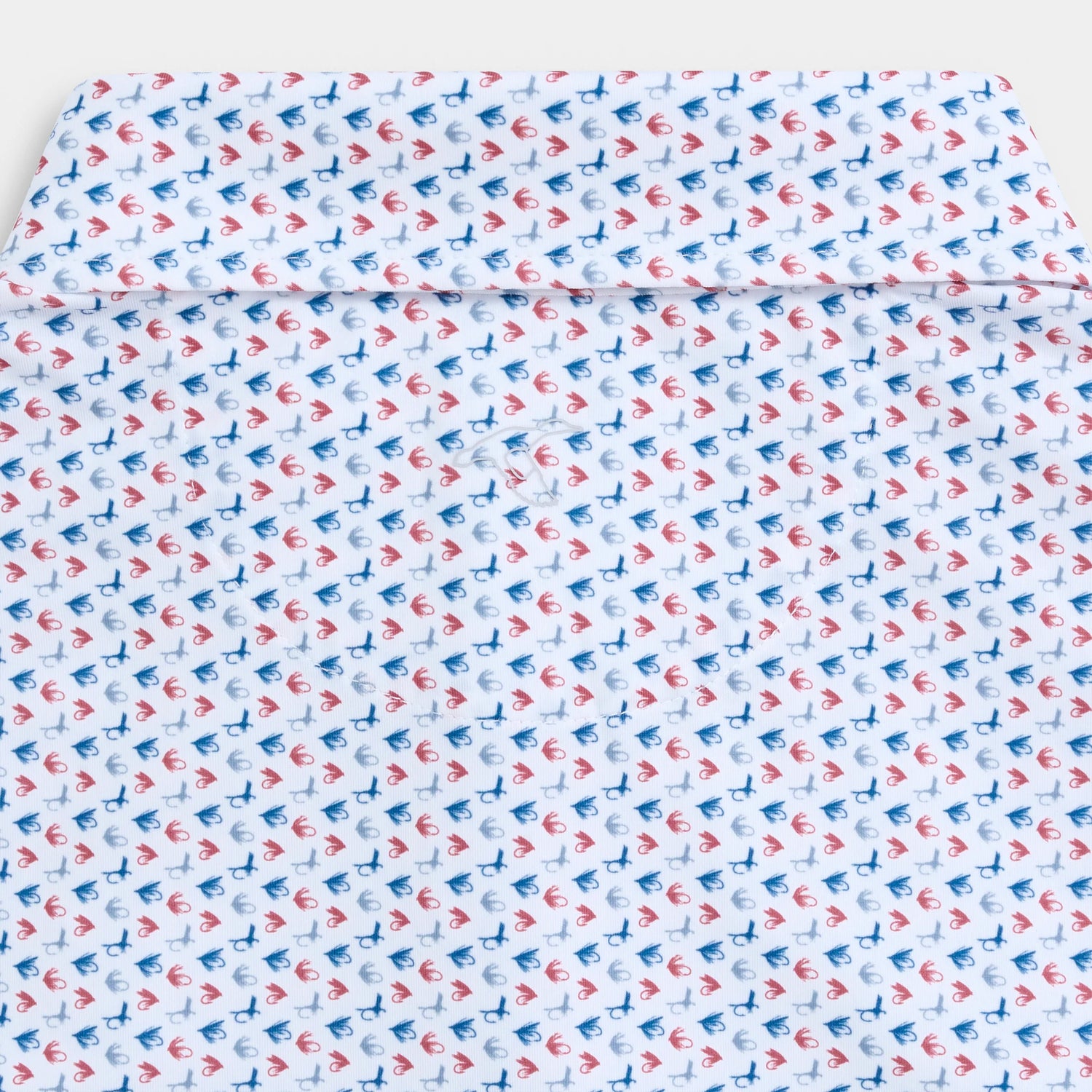 Crafted for the work-to-weekend angler, the Flies Printed Polo features a subtle geometric pattern of fishing flies .The moisture-wicking performance fabric is perfect for the golf course or the office and keeps you looking sharp and feeling comfortable all day long. The Flies Printed Polo features our signature sewn-in collar stays to keep the curl away.