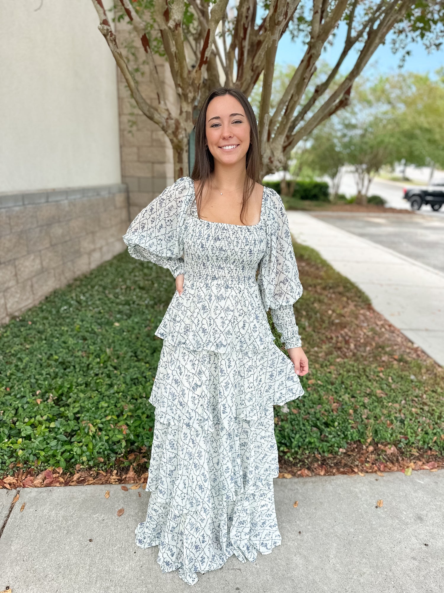 The Gertrude Tiered Dress from Entro comes in sizes Small-Large, and is offered in a black and cream colorway!