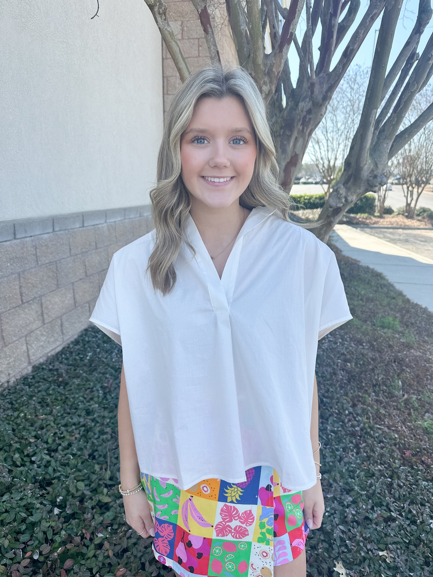 Helen Signature Collar Top - White