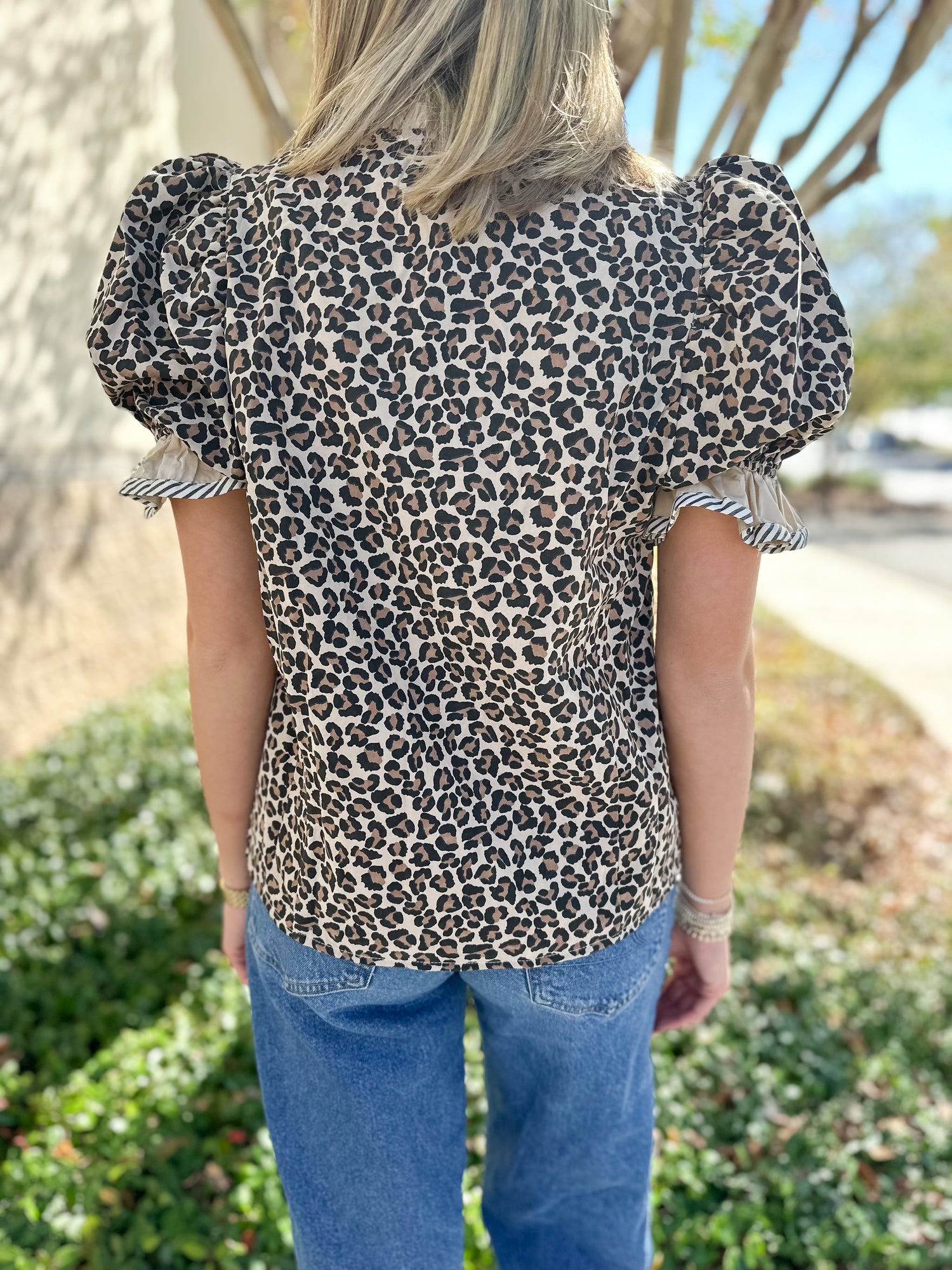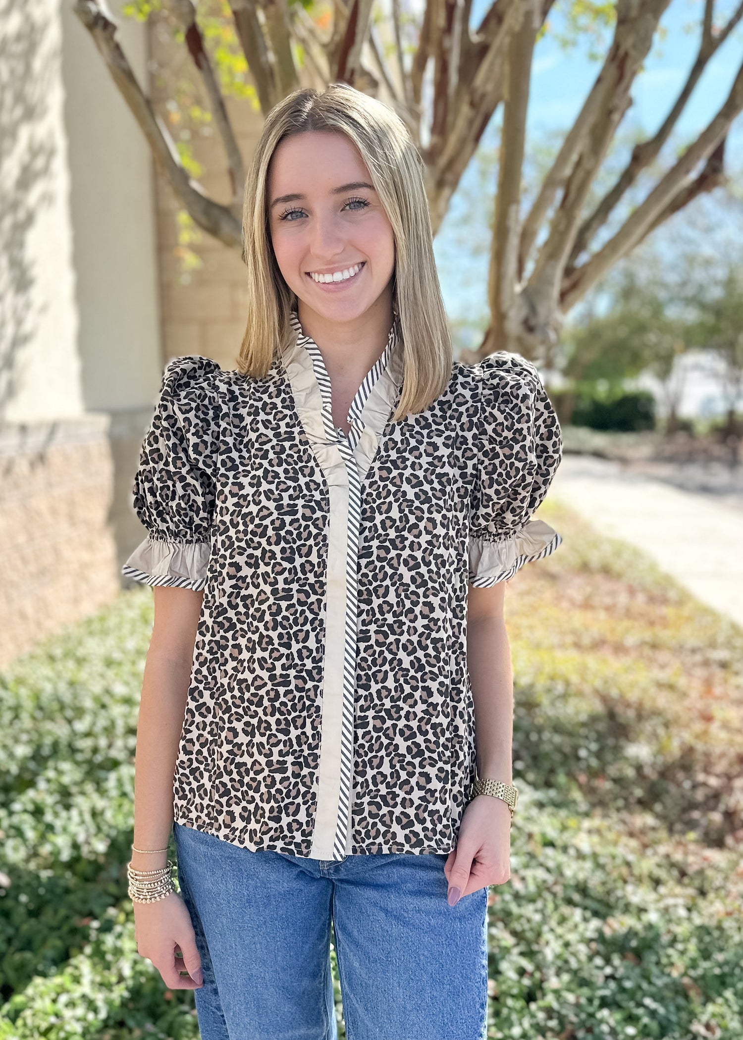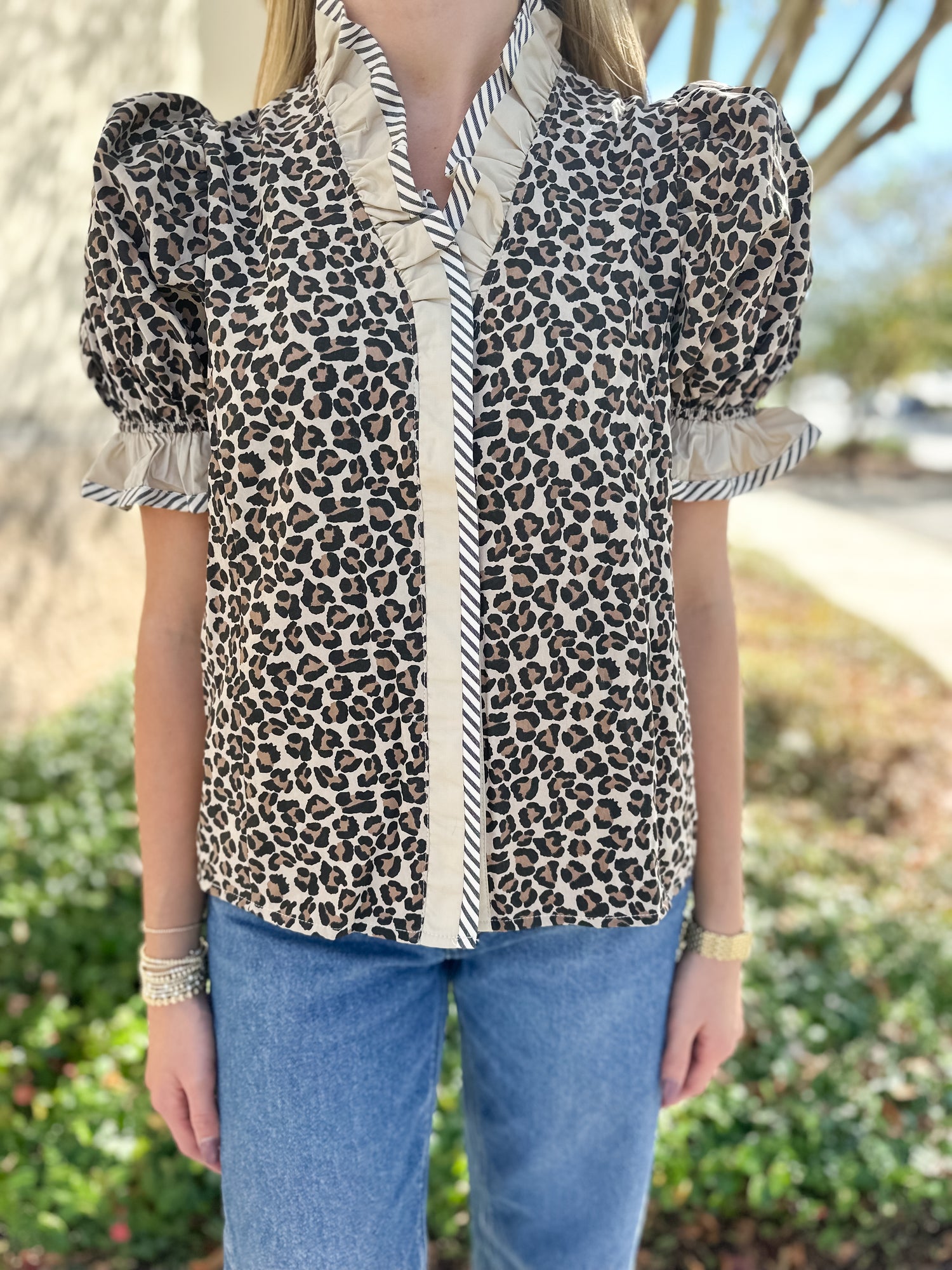 The Lana Top from Entro has the cutest striped detailing paired with a funky cheetah pattern!