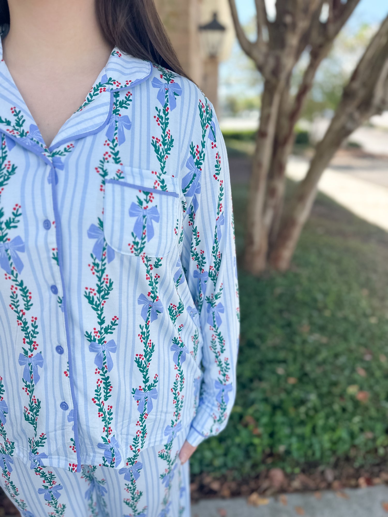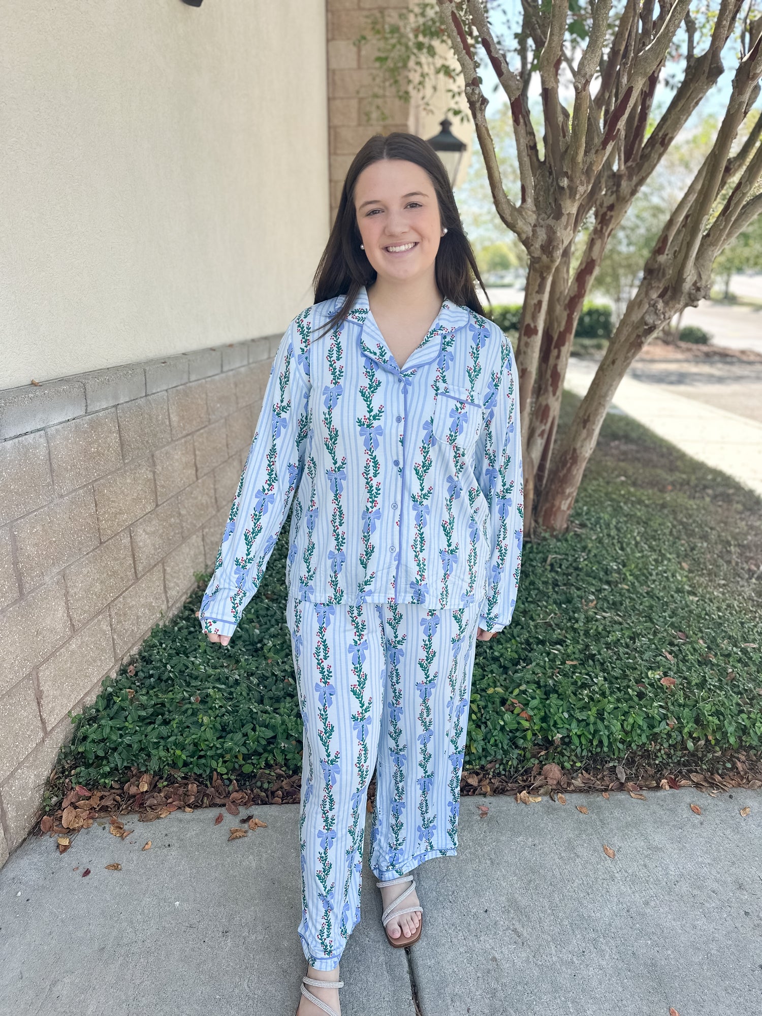 Upgrade your loungewear with the Charlotte Pants Set, crafted from our new lux modal fabric, ModalBliss. This set includes a button-front top with a classic collar and long sleeves, paired with pants featuring an elastic waistband and adjustable drawstring for the perfect fit. Finished with sleek contrast piping, it's the ideal combination of comfort and effortless style.