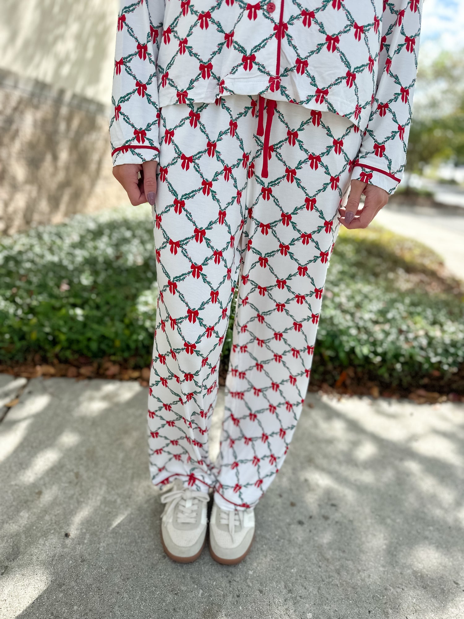 Upgrade your loungewear with the Charlotte Pants Set, crafted from our new lux modal fabric, ModalBliss. This set includes a button-front top with a classic collar and long sleeves, paired with pants featuring an elastic waistband and adjustable drawstring for the perfect fit. Finished with sleek contrast piping, it's the ideal combination of comfort and effortless style.