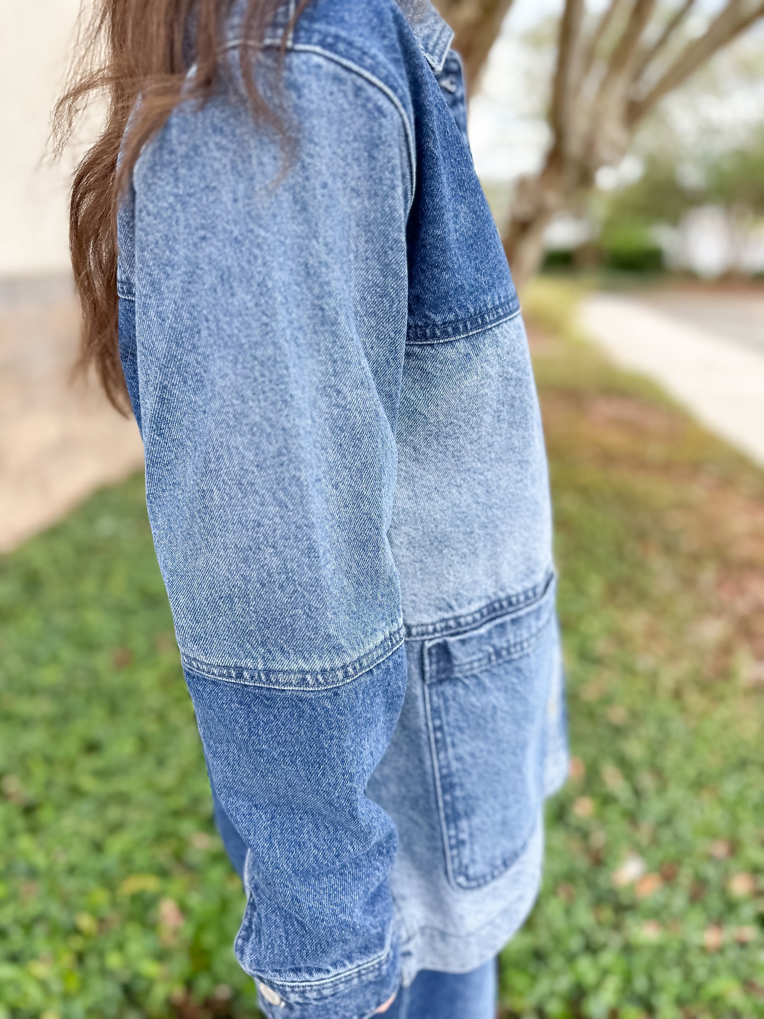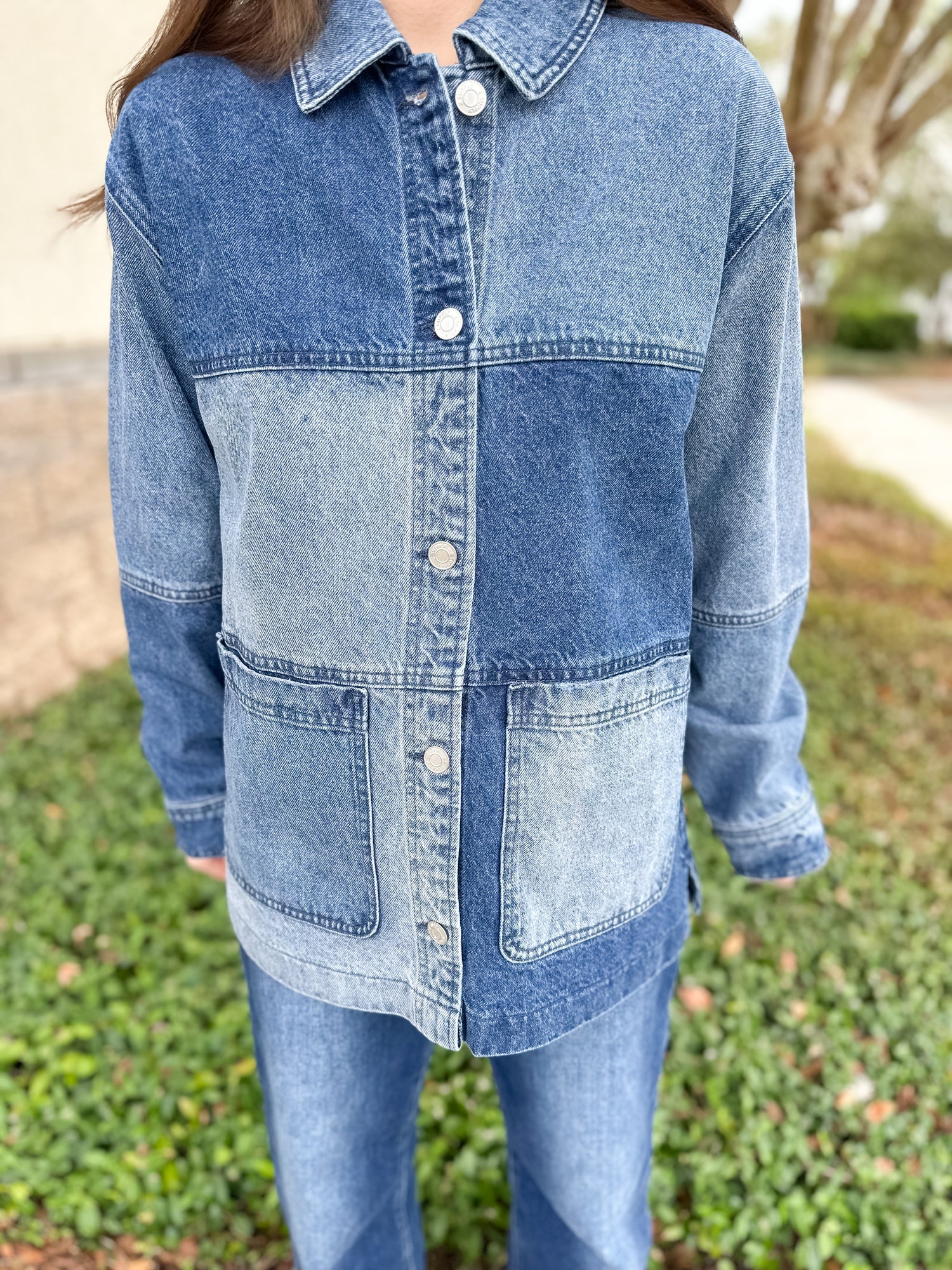 With its oversized fit and patchwork denim design, this jacket strikes the perfect balance of relaxed and refined. A true grab-and-go layer, it’s ready for coffee runs, weekend plans, or wherever your day takes you.