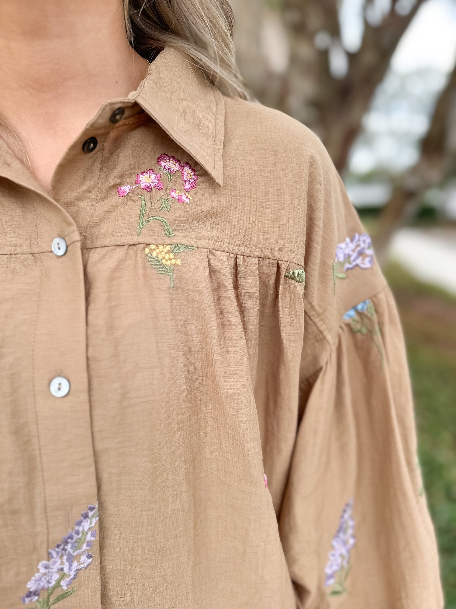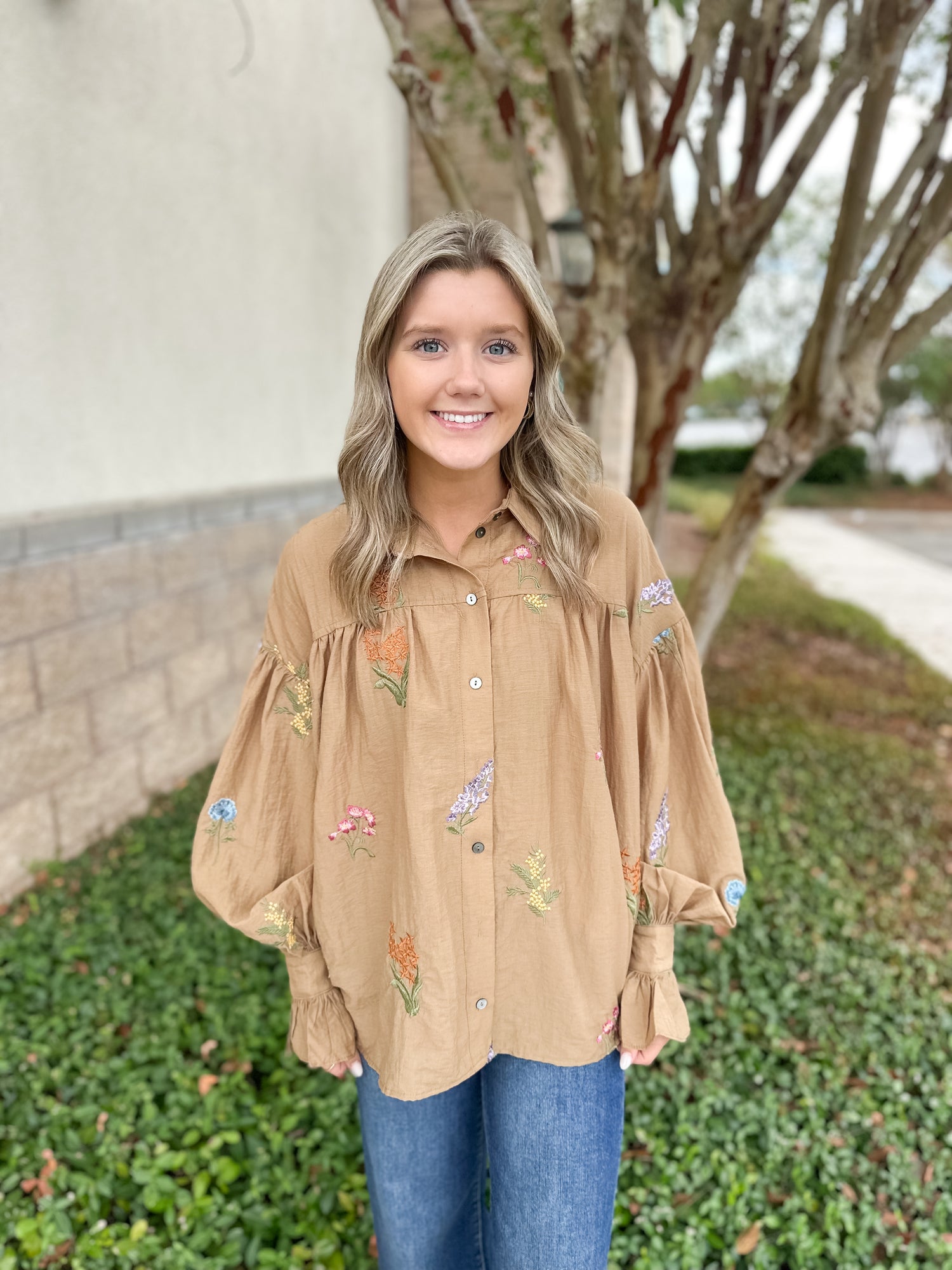 This Long Sleeve top from Entro is the perfect statement top for the fall, the embroidered floral motif adds the perfect detail.