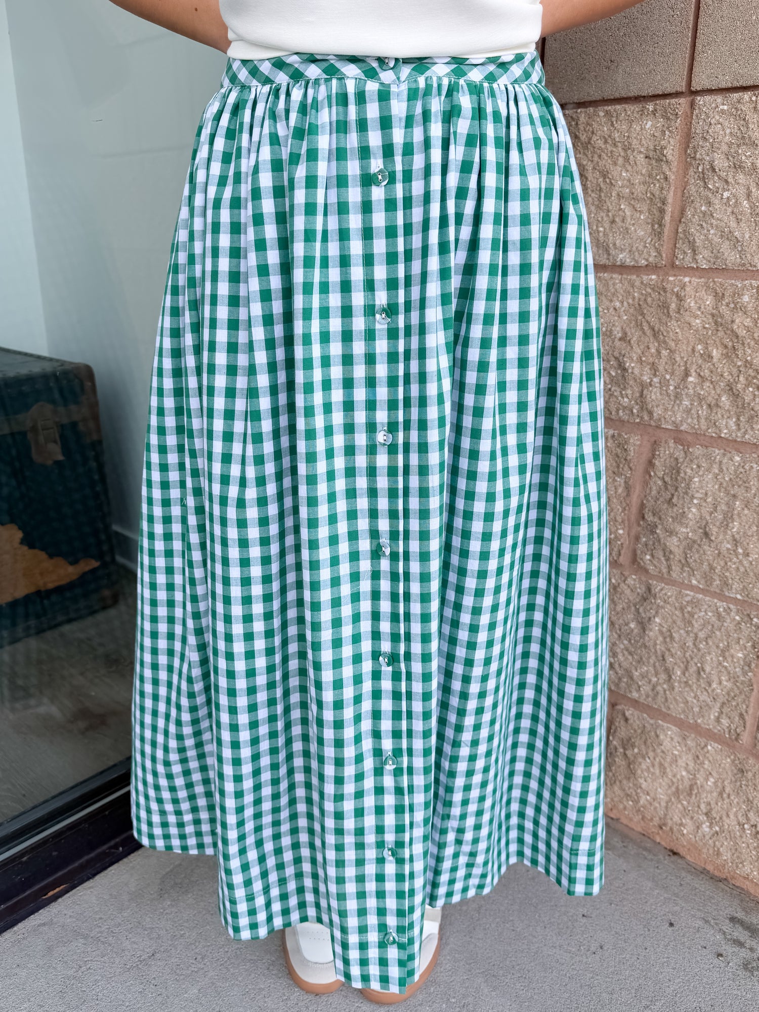 The Pinch Me Skirt is a beautiful gingham button down midi skirt.