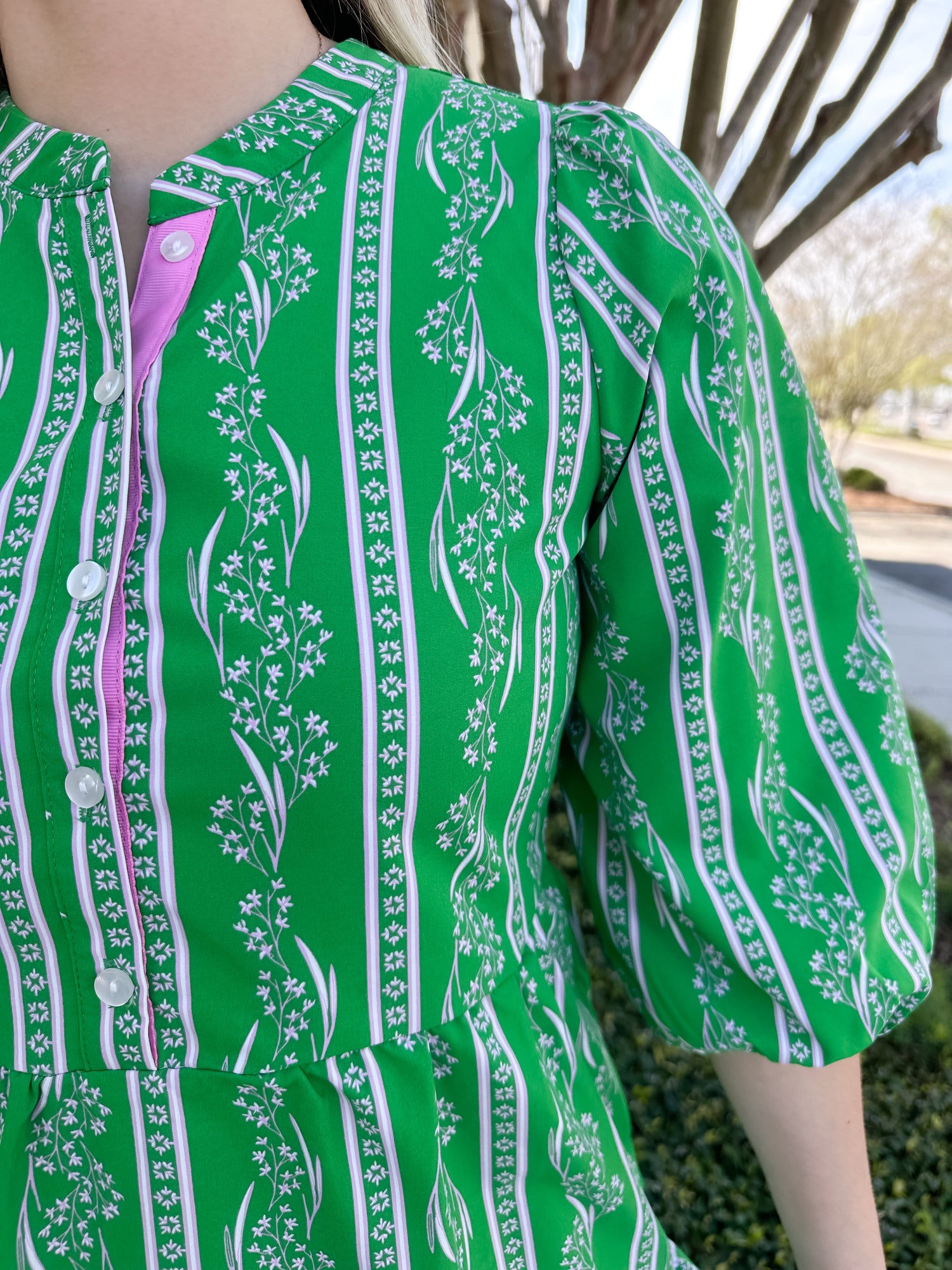 Meet the Riley Mini Dress: easygoing, charming, and ready for anything. Designed with comfy 3/4 sleeves finished with elastic and contrast grosgrain trim along the button placket, it’s all about thoughtful details. The tiered mini skirt adds soft movement and shape, while side pockets keep things effortlessly practical. A feel-good favorite you’ll reach for on repeat.