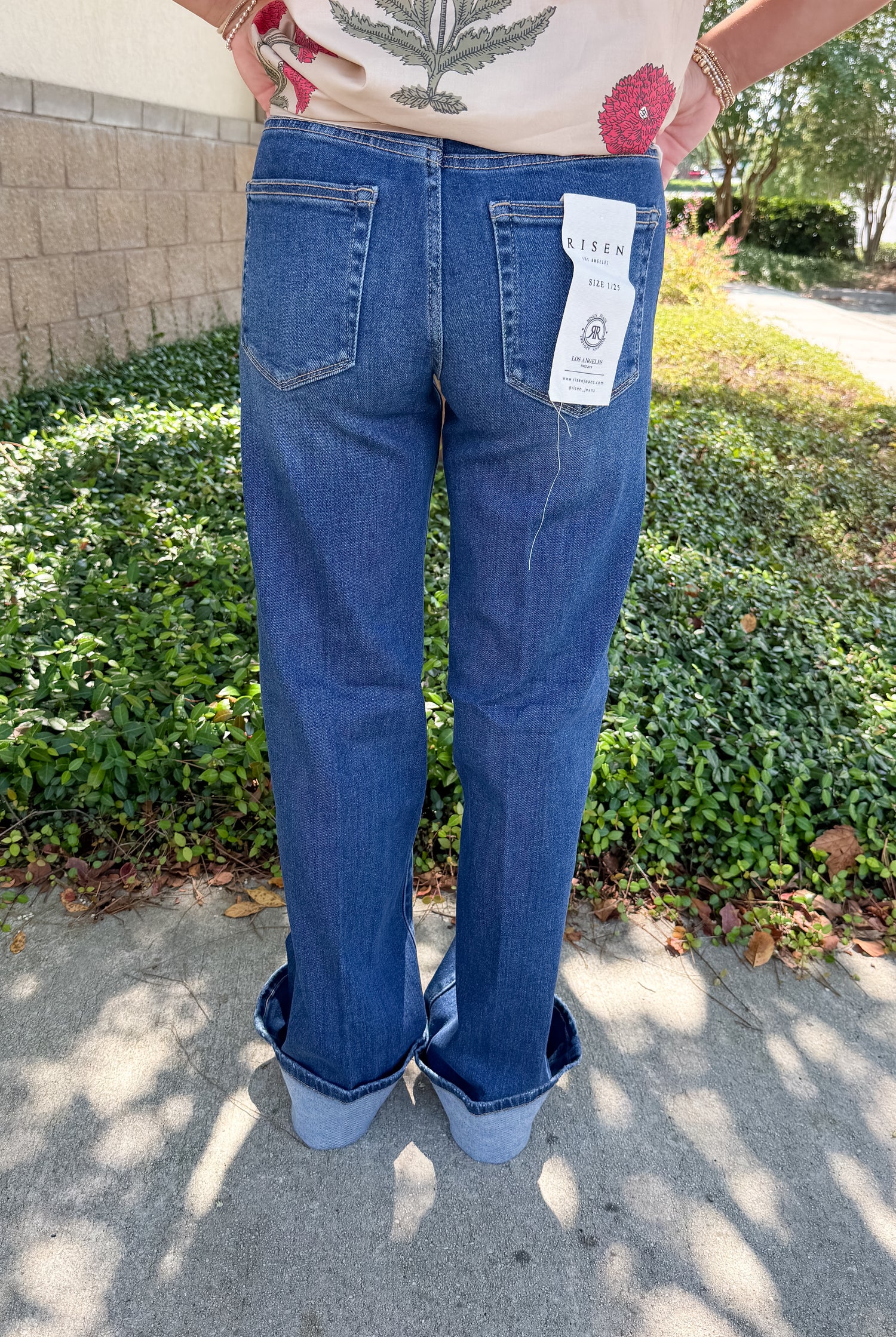 Risen Deidre TC Wide Leg Cuffed Jeans - Dark