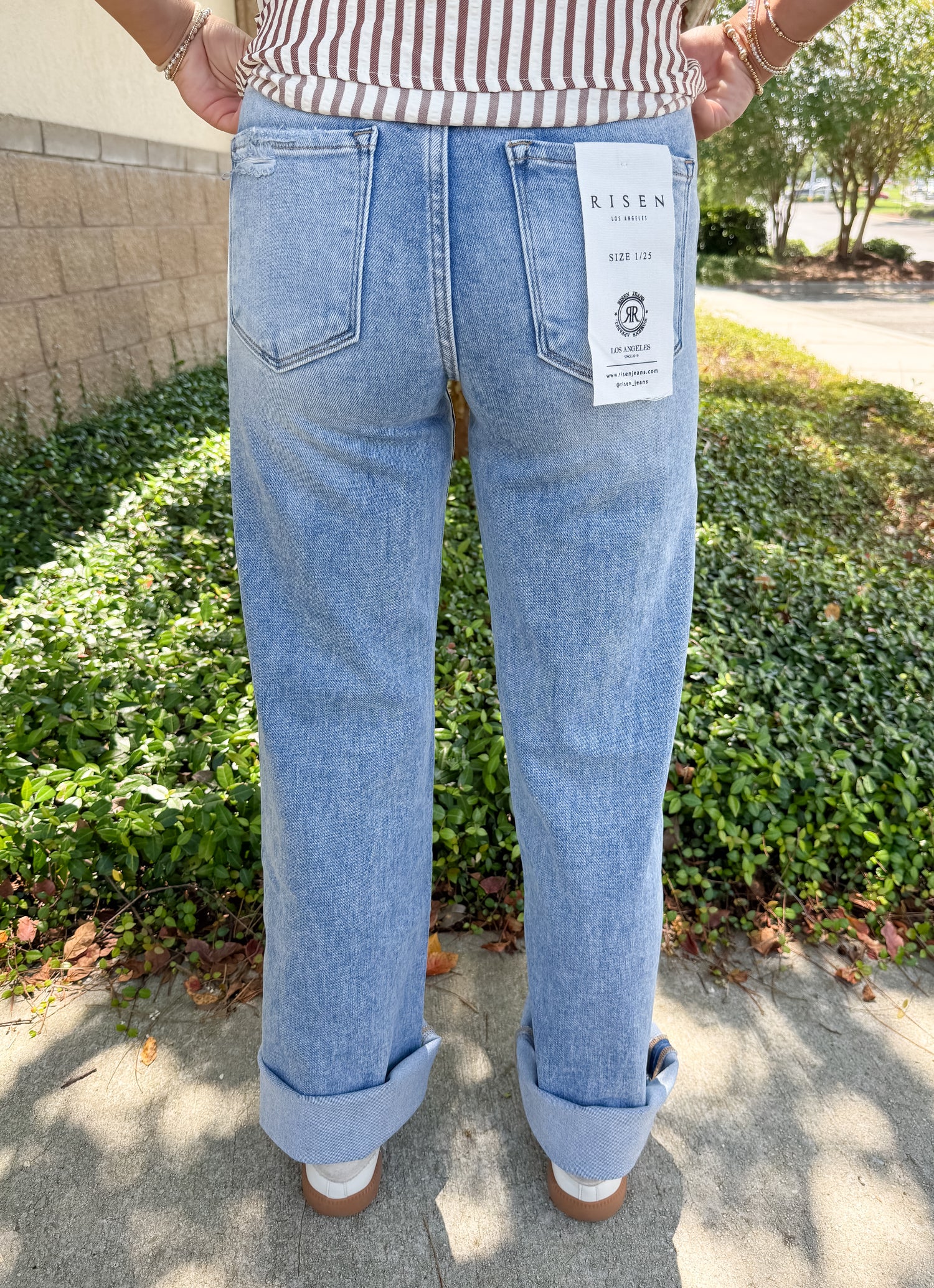 Risen Lauren Cropped Wide Leg Step Hem Jean - Medium