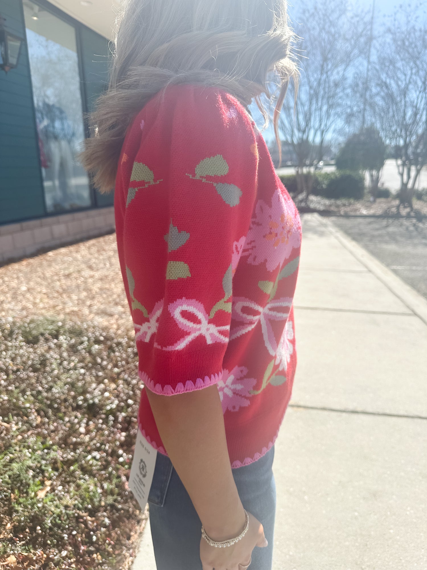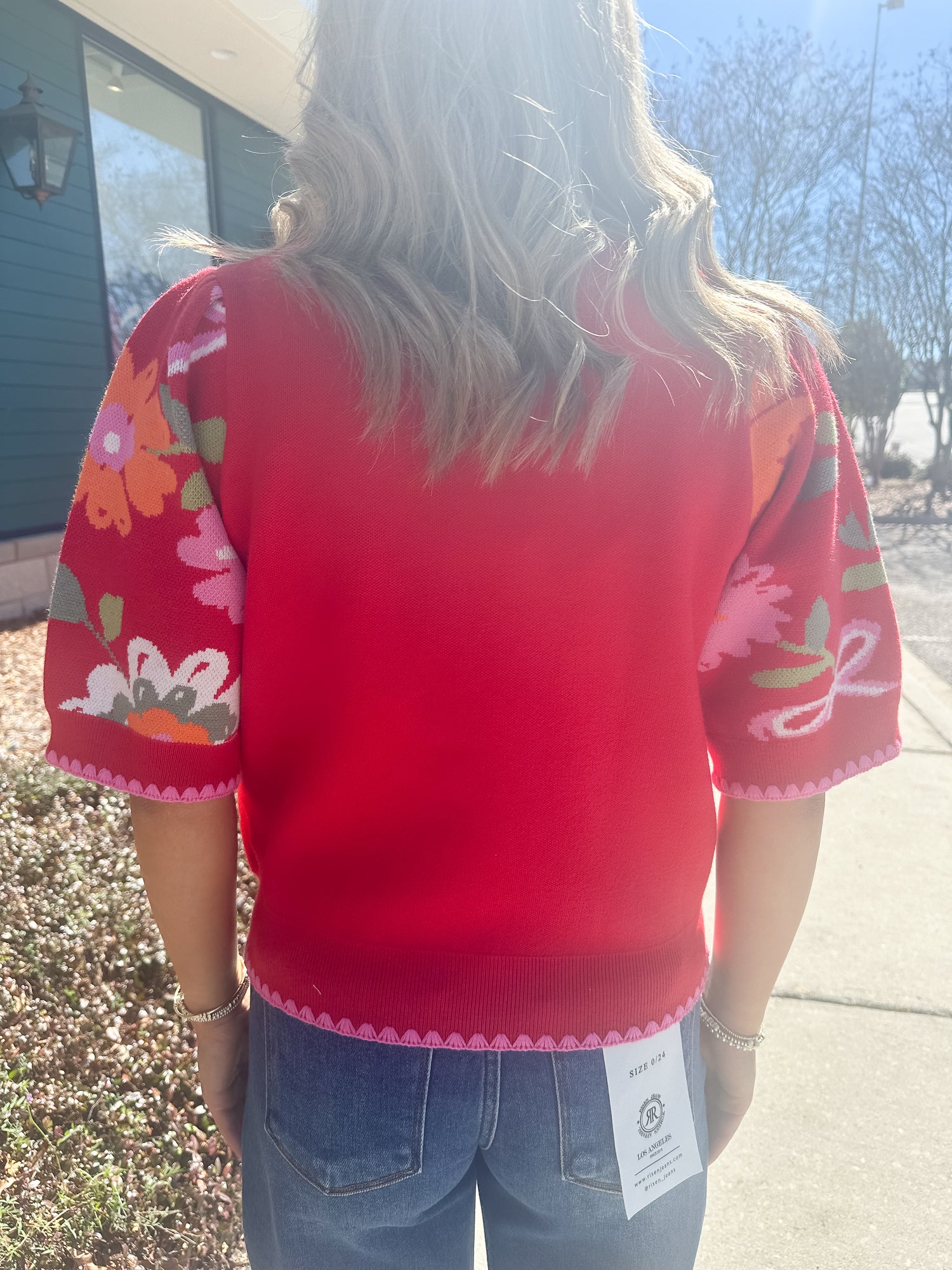 A statement sweater with Southern charm 🌸 The Rosalie Bloom Knit Top features a vibrant floral pattern with delicate bow details, soft puff sleeves, and scalloped trim for the sweetest feminine finish. The bold red base makes it perfect for spring events, or adding a pop of color to your everyday denim. Soft, comfortable, and eye-catching — this one is made to stand out.