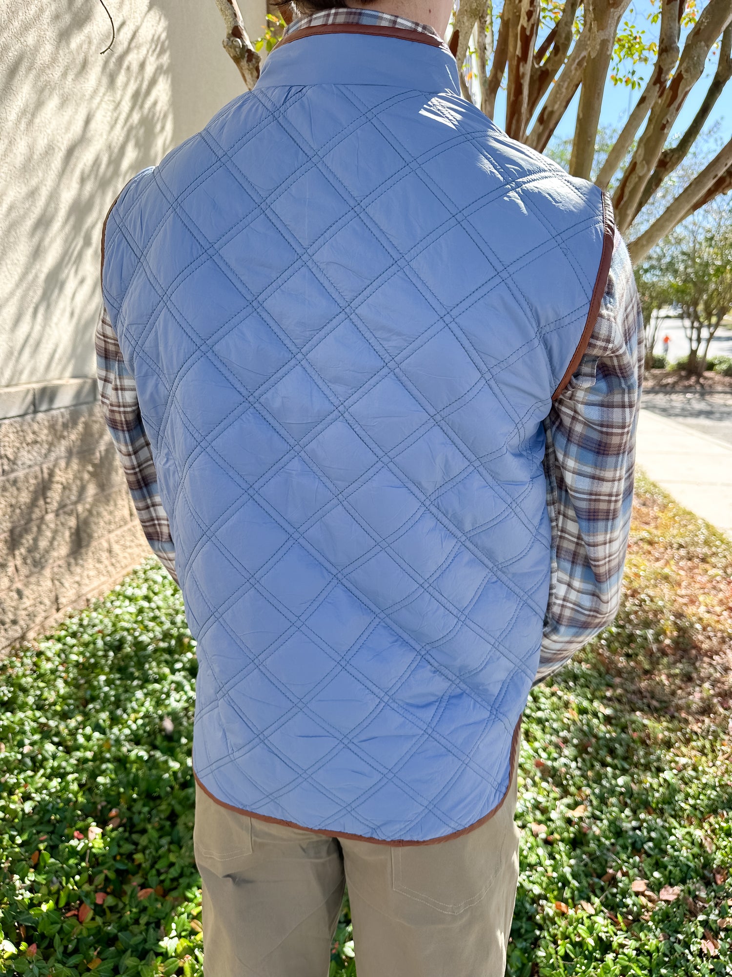 Effortlessly polished and perfectly versatile, the Saddle Ridge Quilted Vest brings a touch of timeless charm to any look. Designed in a soft sage or blue tone with warm chestnut trim, this piece combines classic quilting with a modern silhouette. Lightweight yet cozy, it layers beautifully over your favorite knits or flannels for those crisp fall days. Finished with sleek welt pockets and subtle embroidery, it’s the ideal blend of comfort and sophistication.