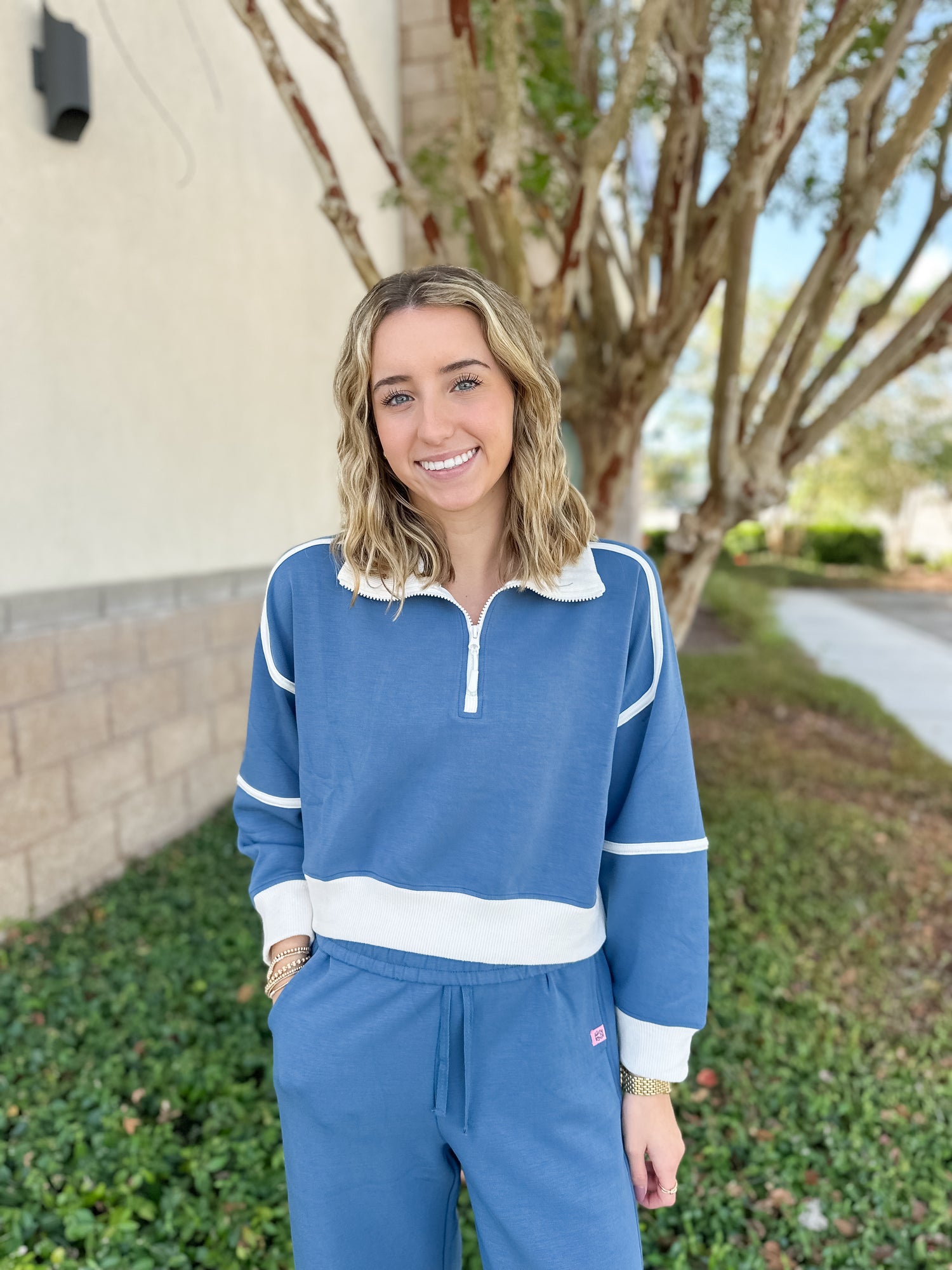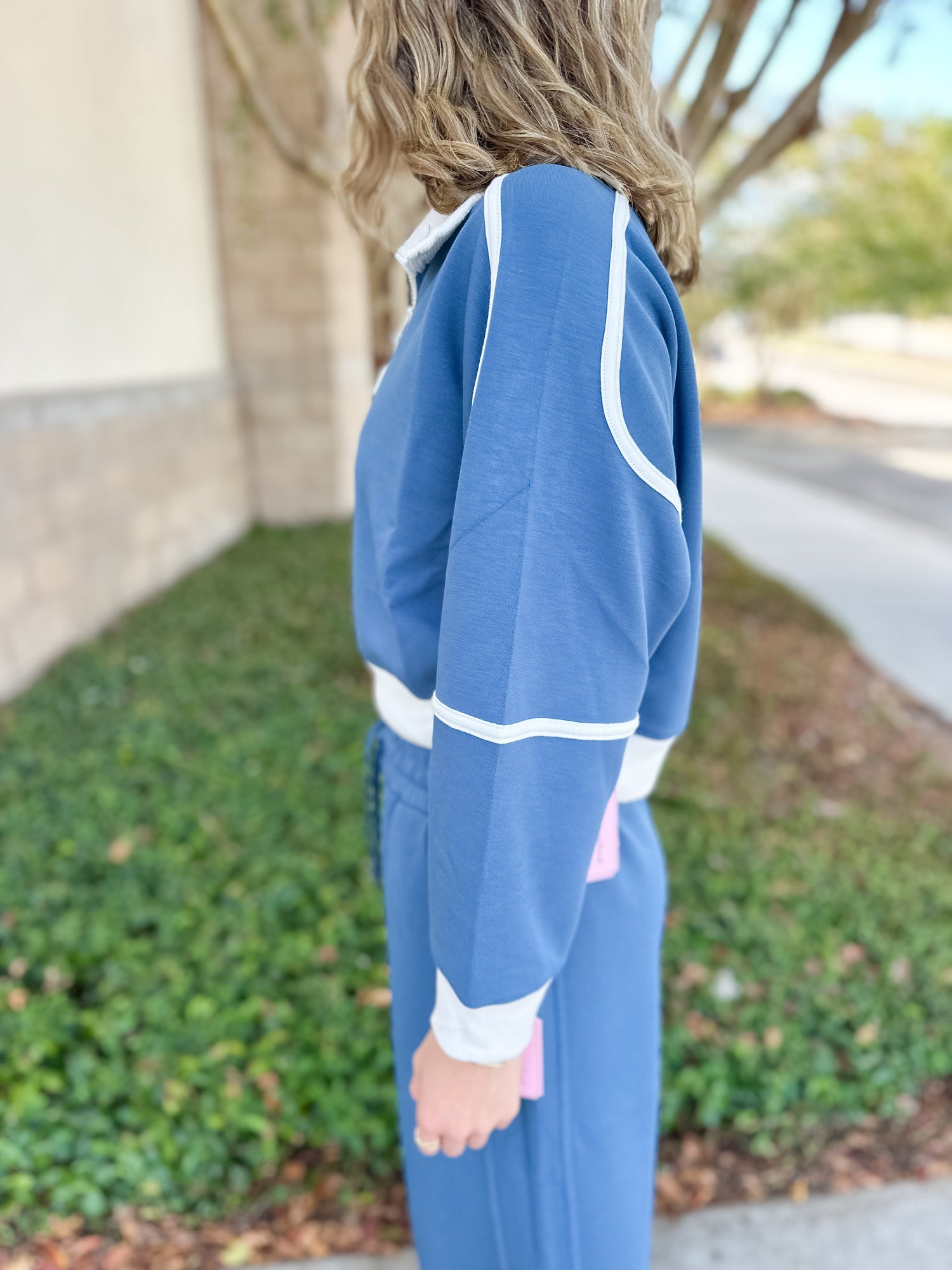 The contrast zip is the prefect addition to your wardrobe. Featuring contrast piping, cuffs, hem and 1/4 zip collar, it's easy to throw on and go. Made of 48% modal 48% polyester 4% spandex.