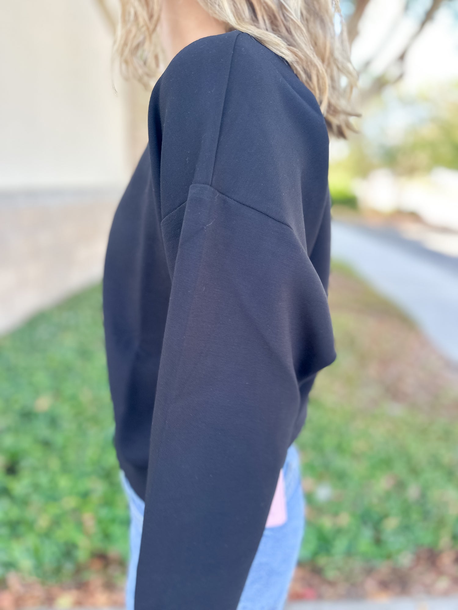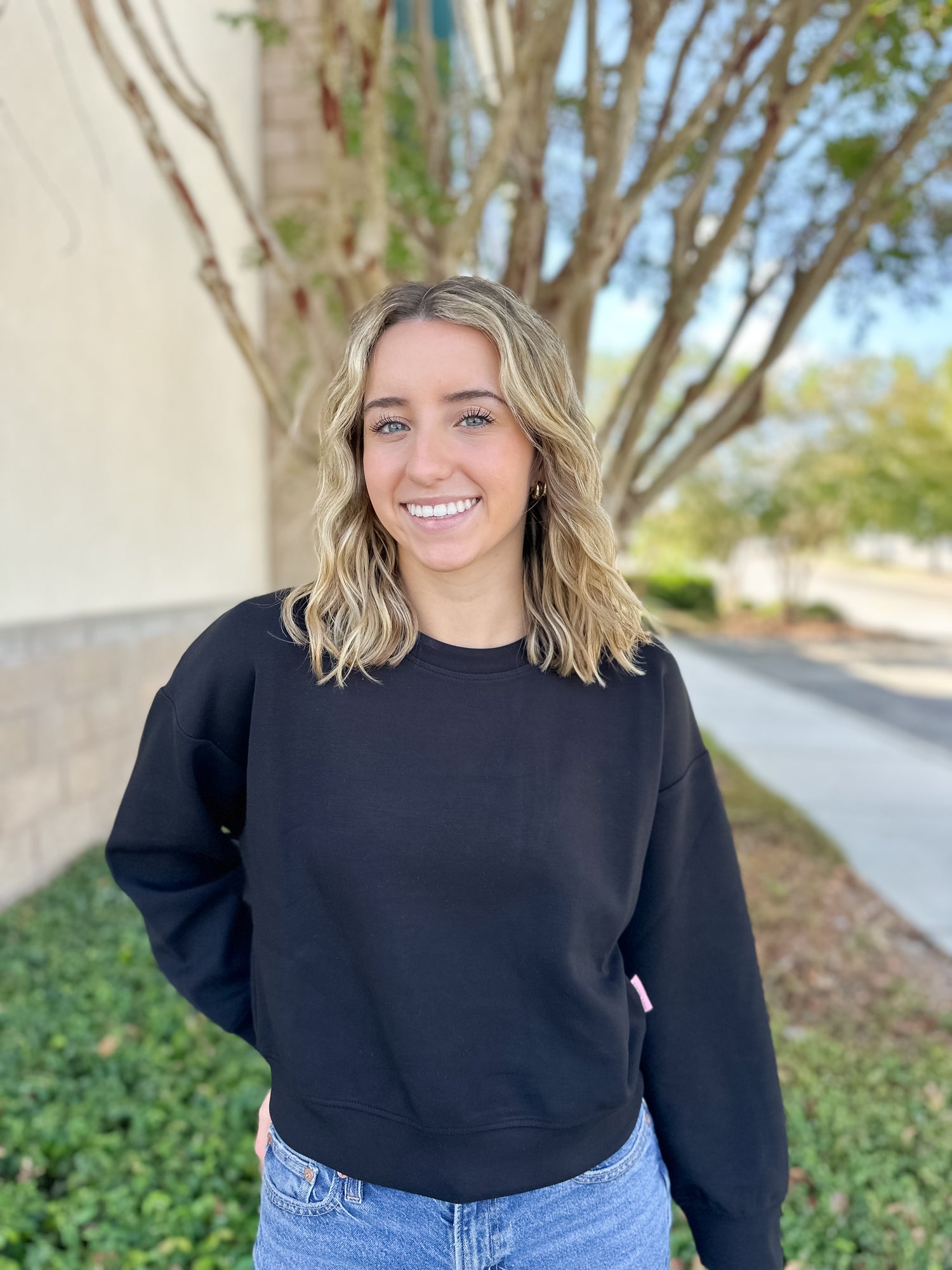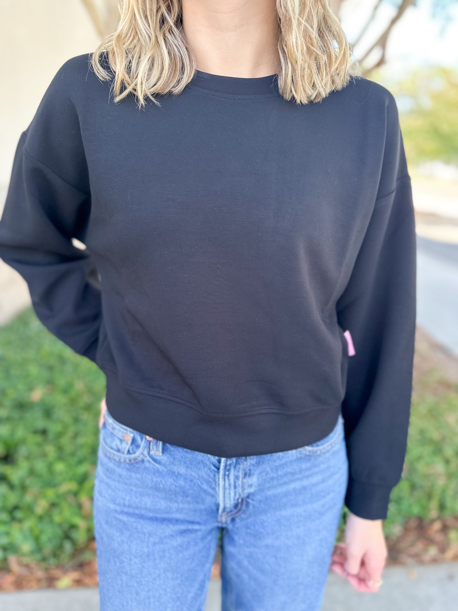 This comfort pullover will be your new favorite lounge top. It features ultra soft fabric, boxy cropped silhouette and crew neckline. Made of 48% modal 48% polyester 4% spandex.