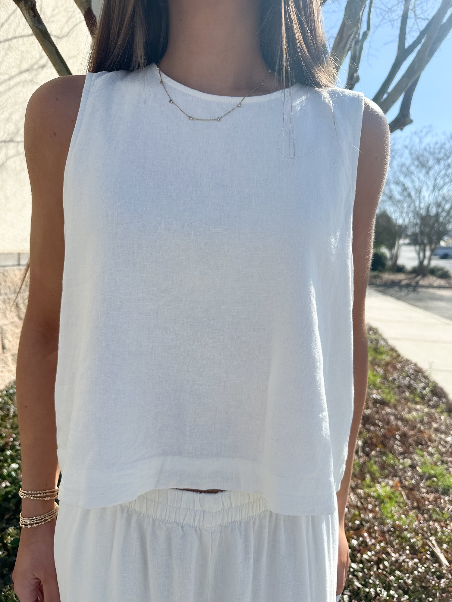 With its relaxed fit and flattering shape, this linen blend tank completes any outfit. Pairs well with the Scout Linen Pant or any of our wide leg denim.