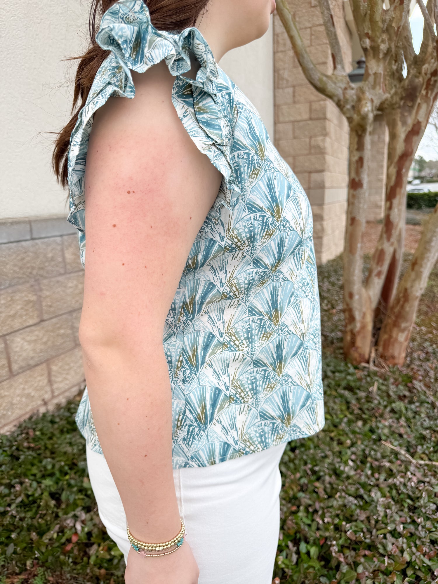 The Soaring Seashells Top from the brand Pinch is a beautiful seashell printed v-neck blouse.